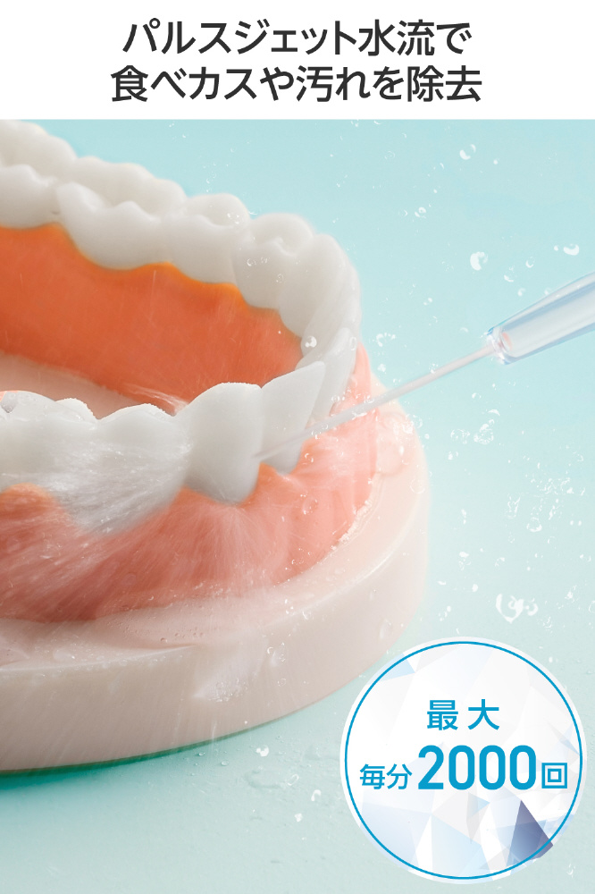 ■勢いのあるパルスジェット水流で食べカスや汚れを除去し、歯と歯ぐきの健康をサポートするデンタルウォッシャーです。