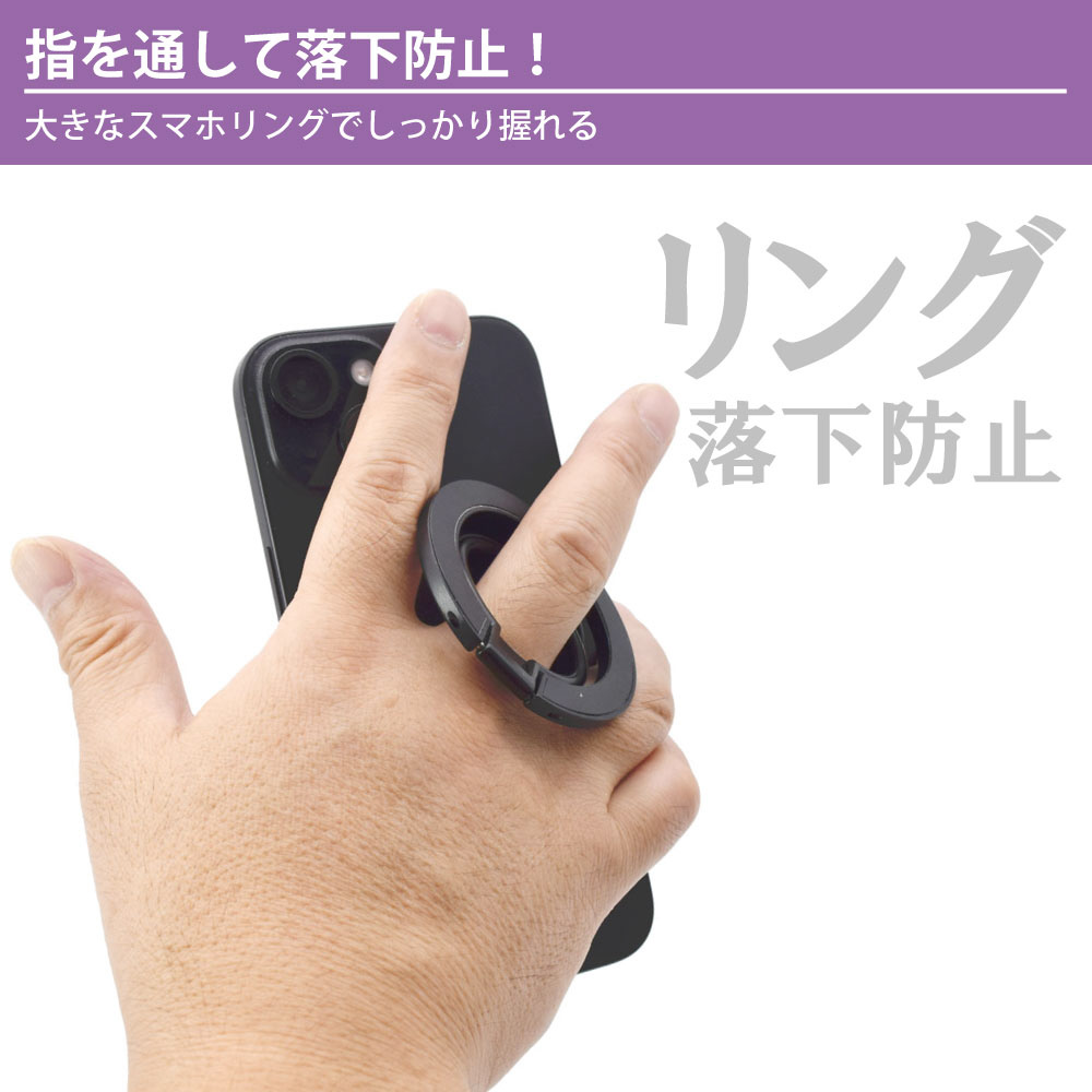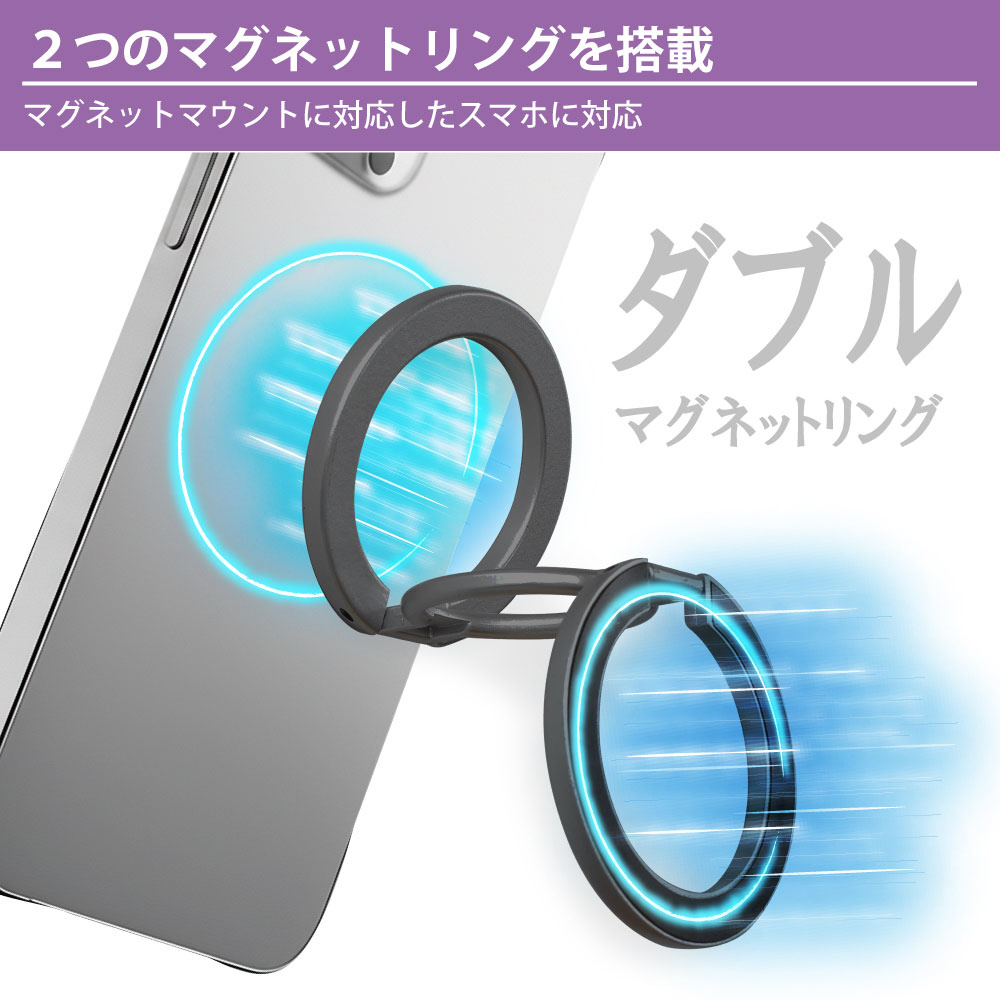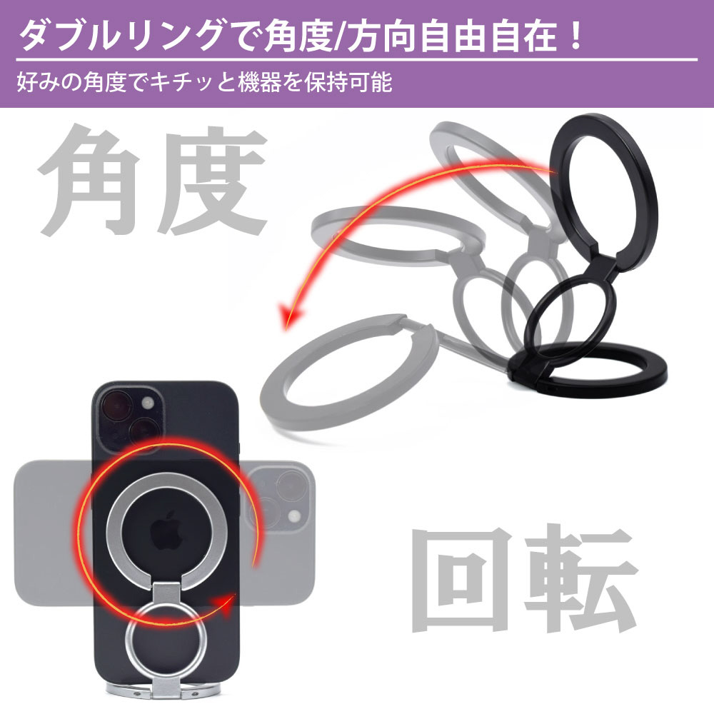 マグネットマウント対応のスマホに使えるダブルリング構造で、金属面にしっかり吸着。