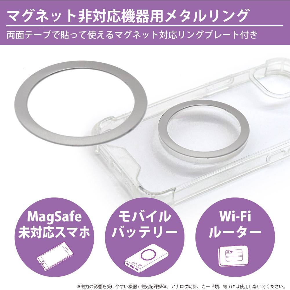 付属のメタルリングを貼り付けることで、スマホケースやモバイルバッテリーなどにも対応可能です。
