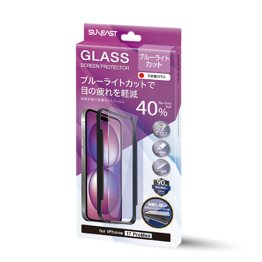 iPhone 17 Pro Max フィルム ブルーライトカット ダイヤモンドコーティング 10H 気泡レス 取り付けキット付 SE-GLDJ1B0AF