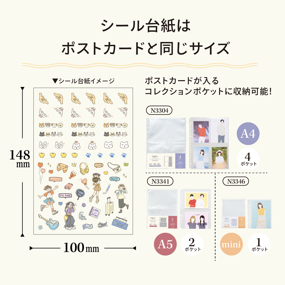 手帳と一緒に持ち運ぶのに便利なポストカードサイズ台紙。