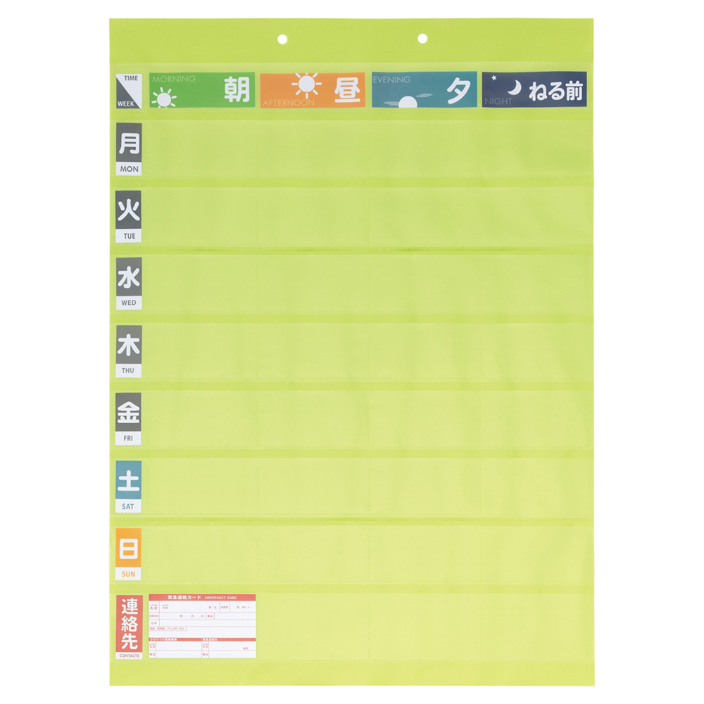 おくすりポケット1週間ワイドタイプ<名刺ポケット付き> 黄緑 OF5-6