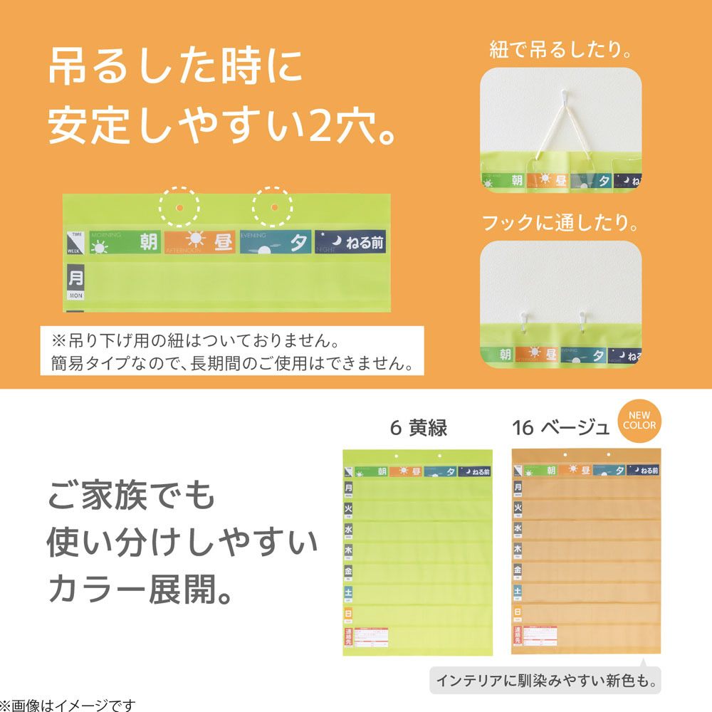 リーズナブルな簡易タイプの服薬カレンダーに新色のベージュが登場!1日4回(朝・昼・夕・ねる前)×1週間の薬を分けてポケットに入れられるので、薬の管理ができて飲み忘れを防止します。