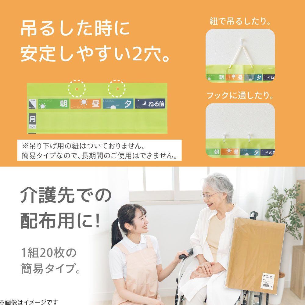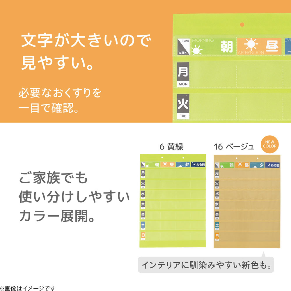 リーズナブルな簡易タイプの服薬カレンダーに新色のベージュが登場!1日4回(朝・昼・夕・ねる前)×1週間の薬を分けてポケットに入れられるので、薬の管理ができて飲み忘れを防止します。