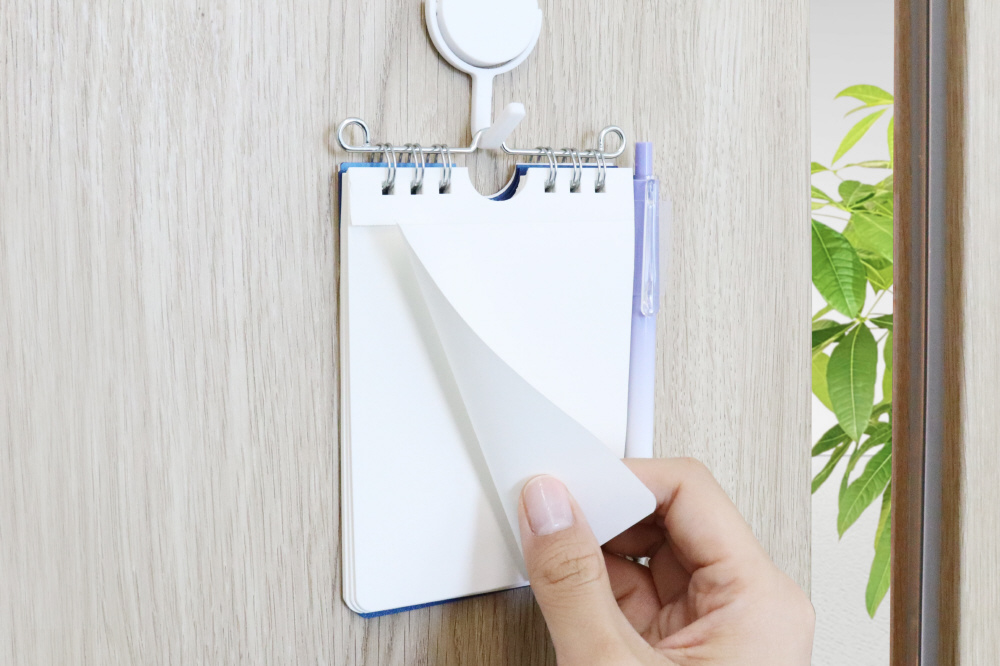 ■フックで吊り下げることができるので、デスクボード、冷蔵庫などにつるすことができます。