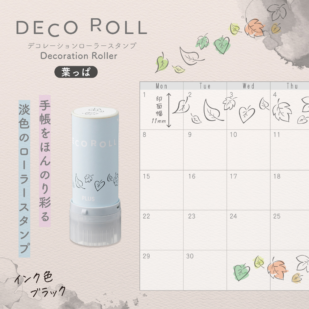 手帳やカードのデコレーションにぴったりな、デコレーションローラースタンプ「デコロール」は、淡いインクカラーで、手帳やカードを優しい色で彩ります。裏抜けしにくいインクを搭載。インクが淡い色なので、上から文字を書いたり他の柄と組み合わせて使えて自分だけのオリジナルデコが楽しめます。