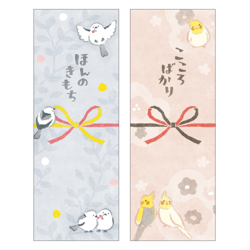 のしノートよりも気軽なシーンで使えるサイズ感とデザインが特徴です。すべてに表書きの文字が印刷されているので、すぐにお使いいただけます。2種類の柄が入っているため、シーンや気分に合わせて使い分けることができます。