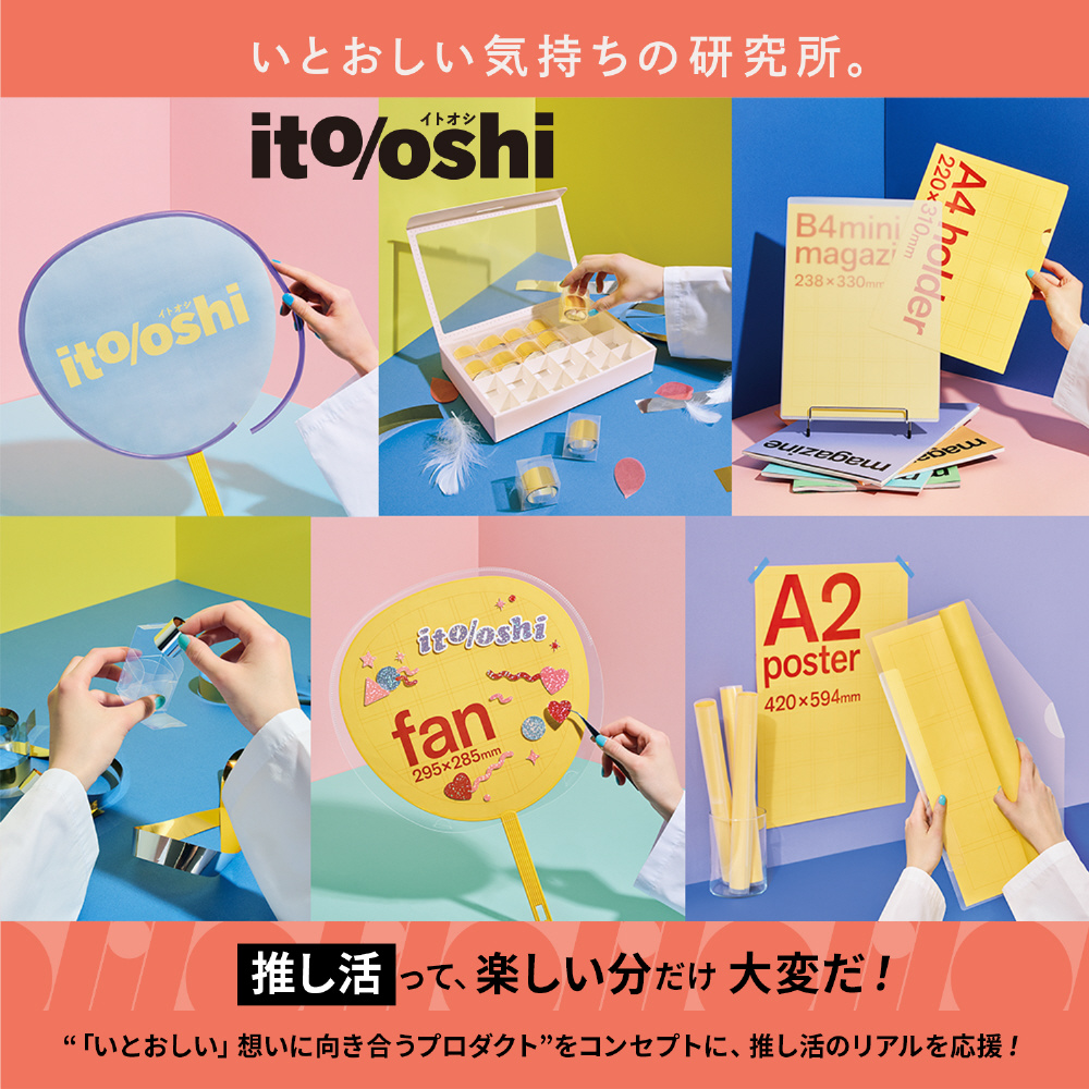 推しの応援から、整理、保管、持ち運びまで、推し活のリアルを追求した応援製品シリーズ「ito/oshi(イトオシ)」の第2弾。「日常では推し活をしていることを周囲にあまり知られたくない」「推しの現場*まではグッズを目立たないようにしたい」「もらった特典、記念品をきれいに持ち帰り保存したい」という要望に応え、従来の推し活グッズとは異なるシンプルでおしゃれなデザインを目指しました。