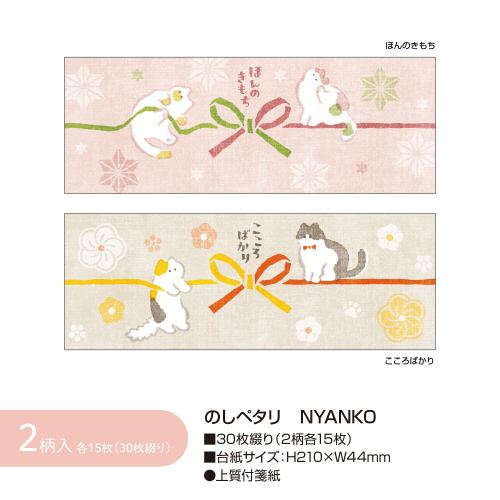 のしノートよりも気軽なシーンで使えるサイズ感とデザインが特徴です。すべてに表書きの文字が印刷されているので、すぐにお使いいただけます。2種類の柄が入っているため、シーンや気分に合わせて使い分けることができます。