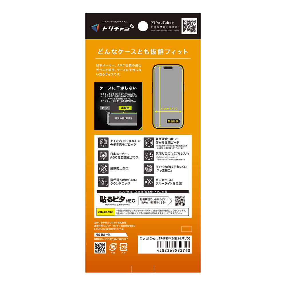 iPhone 17 / 16 Pro フィルム ケースとの相性抜群 360° のぞき見防止 画面保護強化ガラス 光沢 TR-IP25M2-GLS-LFPVCC