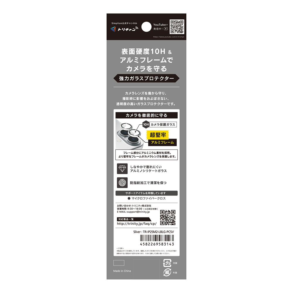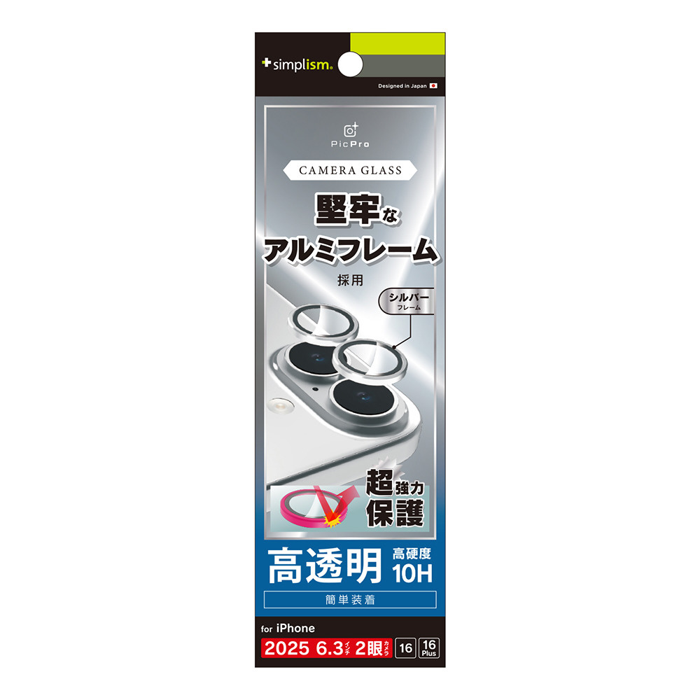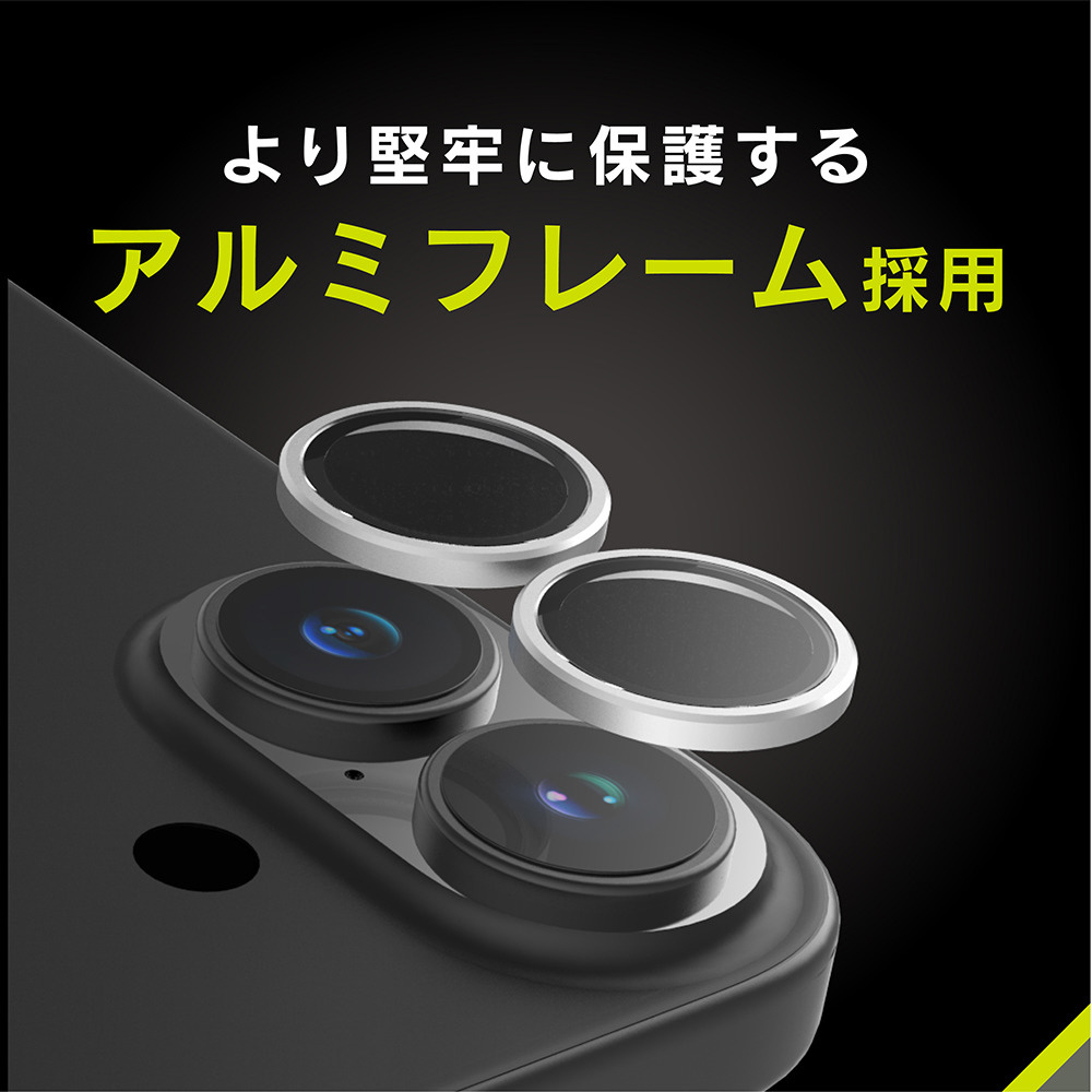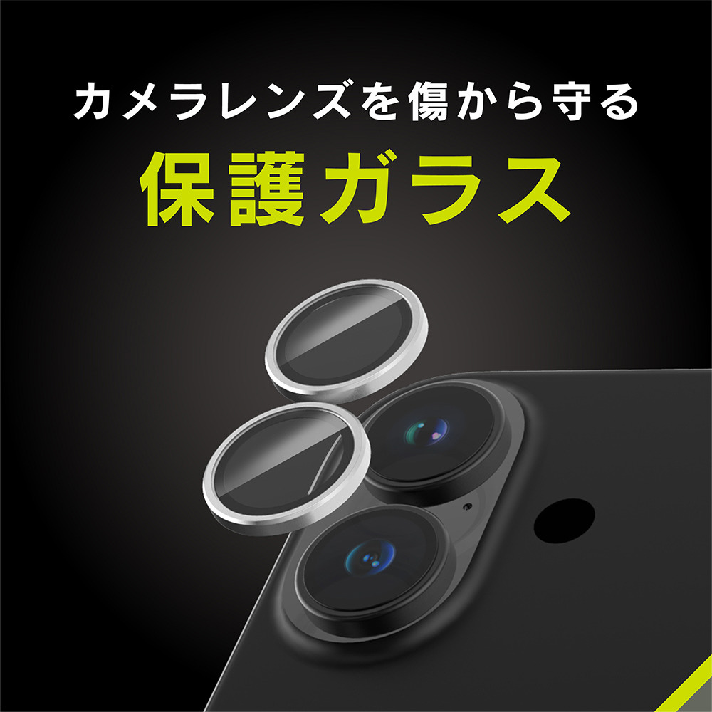 iPhone 17 / 16 / 16 Plus レンズフィルム 精密設計ケース専用 アルミフレーム 高透明 レンズ保護ガラス シルバー TR-IP25M2-LBLG-PCSV