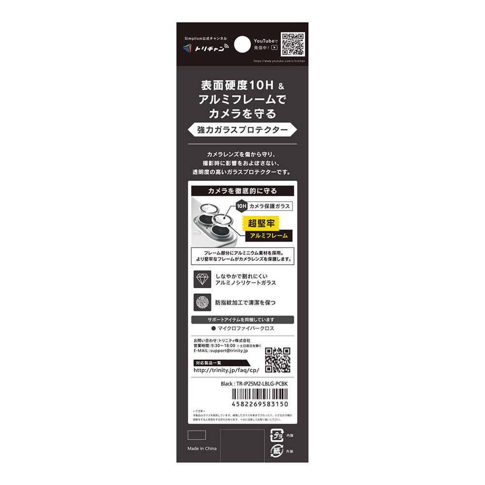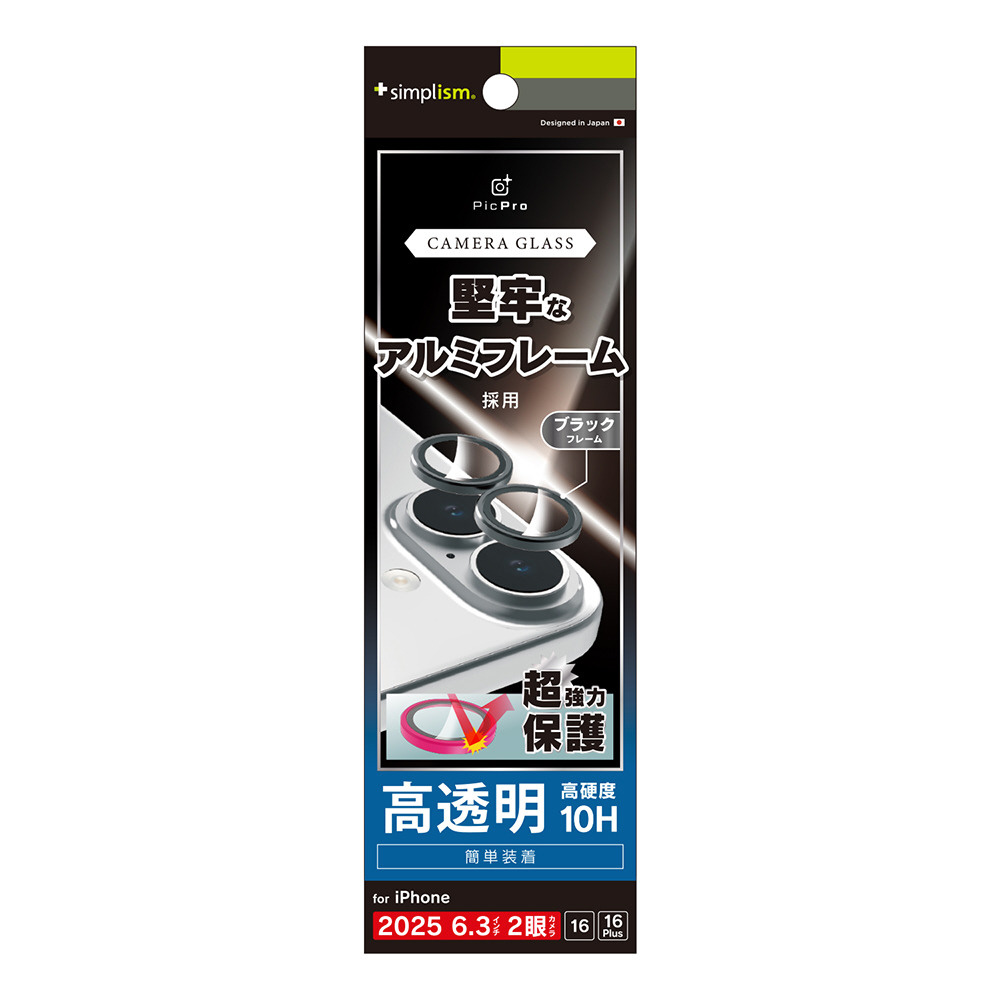 iPhone 17 / 16 / 16 Plus レンズフィルム 精密設計ケース専用 アルミフレーム 高透明 レンズ保護ガラス ブラック TR-IP25M2-LBLG-PCBK