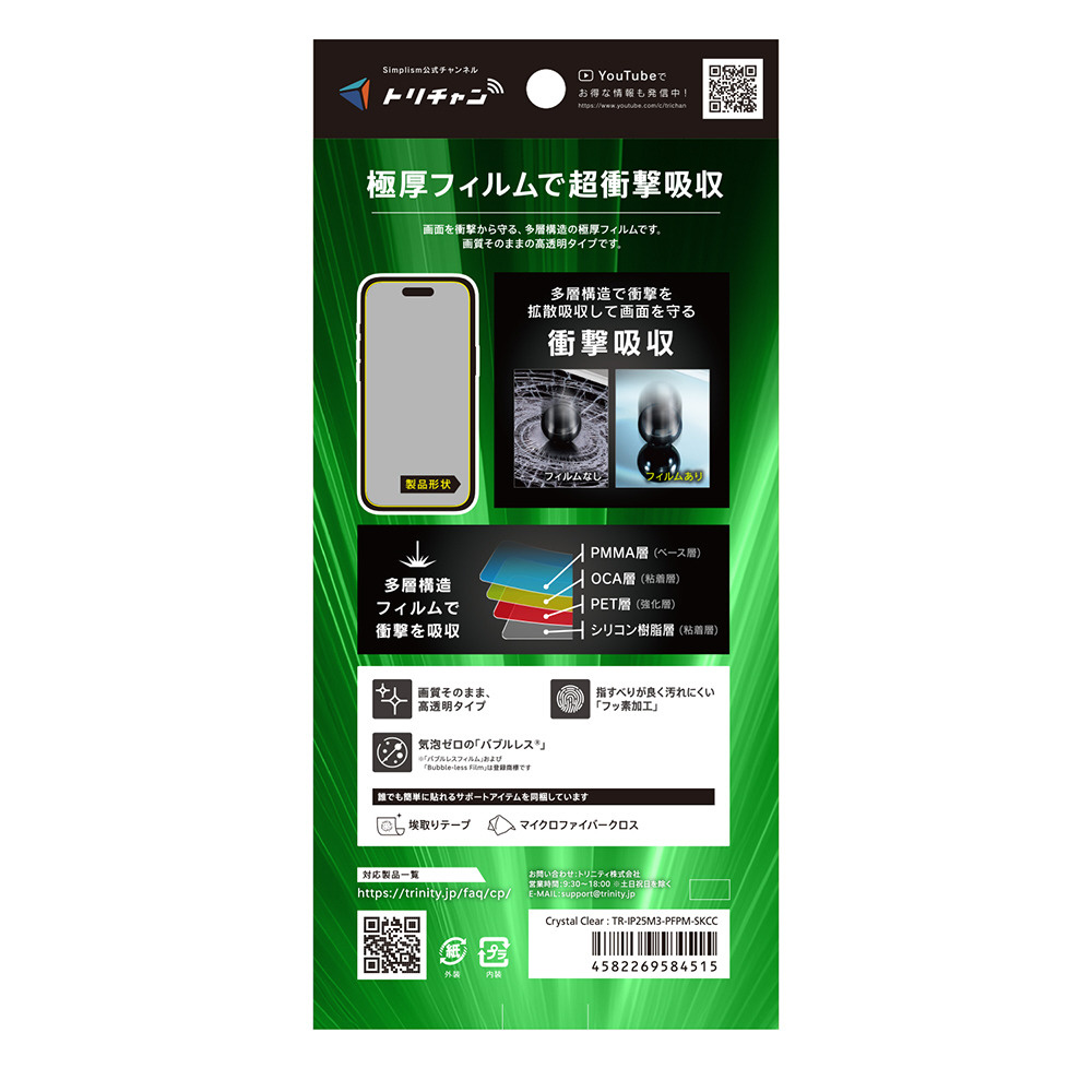 iPhone 17 Pro / 16 Pro フィルム 超衝撃吸収 画面保護フィルム 高透明 TR-IP25M3-PFPM-SKCC