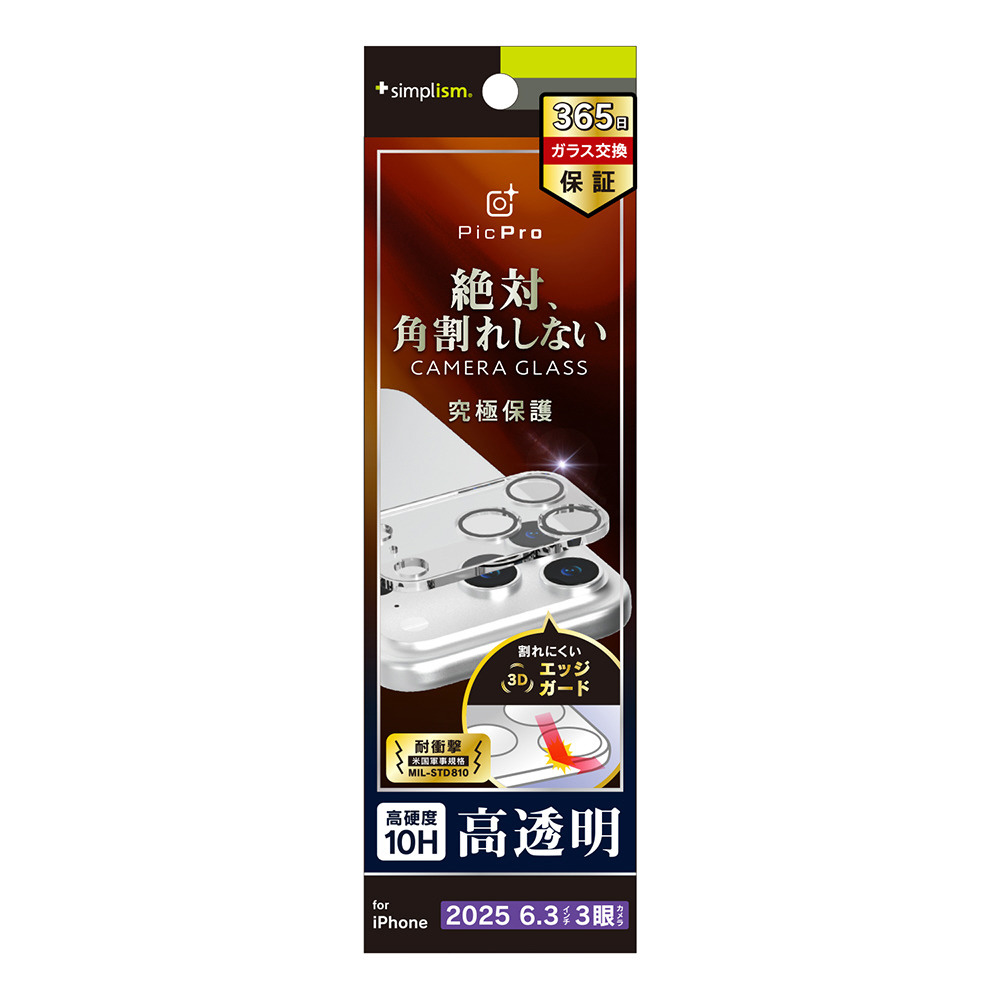 iPhone 17 Pro レンズフィルム [PicPro CUSHION] クリア カメラレンズ保護ガラス 光沢 TR-IP25M3-LCF-PCCCL