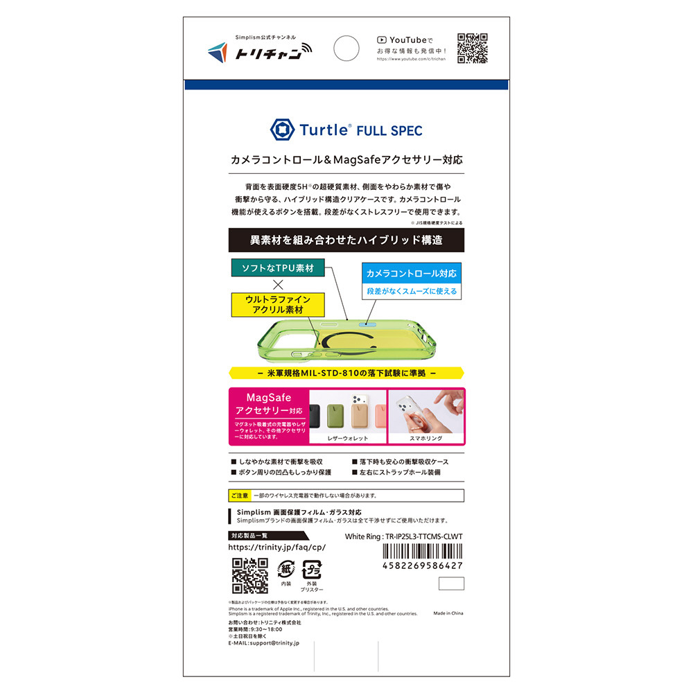 iPhone 17 Pro Max ケース [Turtle FULLSPEC] カメラコントロール&MagSafe対応 ハイブリッド ケース ホワイトリング クリア TR-IP25L3-TTCMS-CLWT