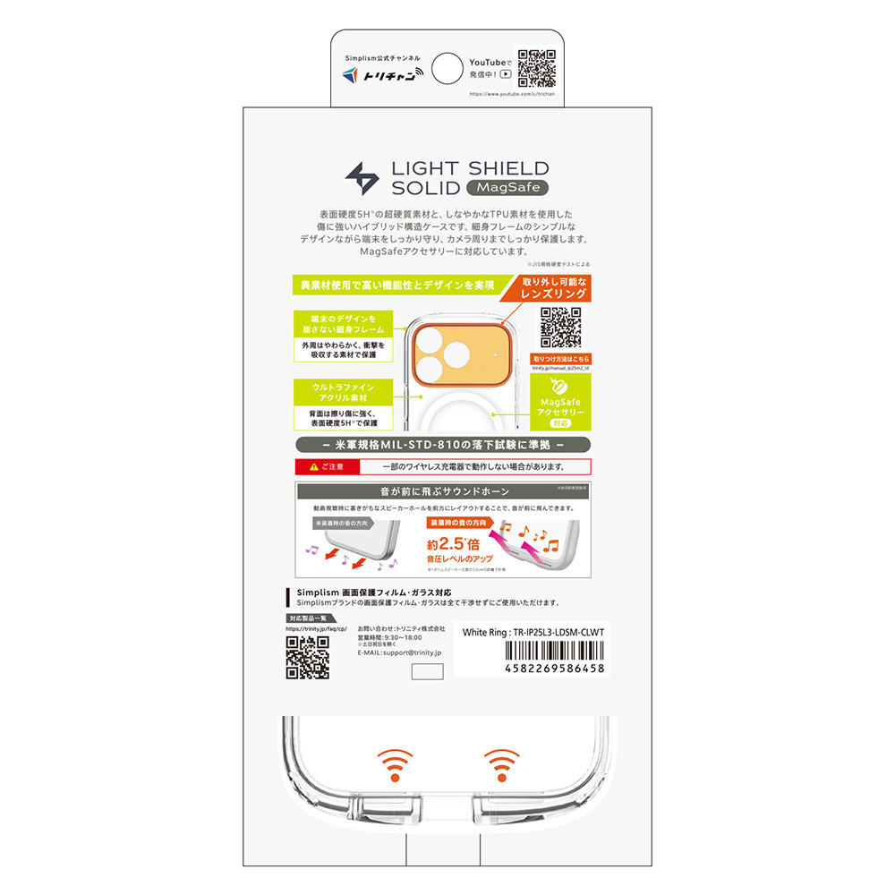 iPhone 17 Pro Max ケース [LIGHT SHIELD Solid] MagSafe対応 超精密設計 衝撃吸収 ハイブリッドクリア ケース ホワイトリング クリア TR-IP25L3-LDSM-CLWT