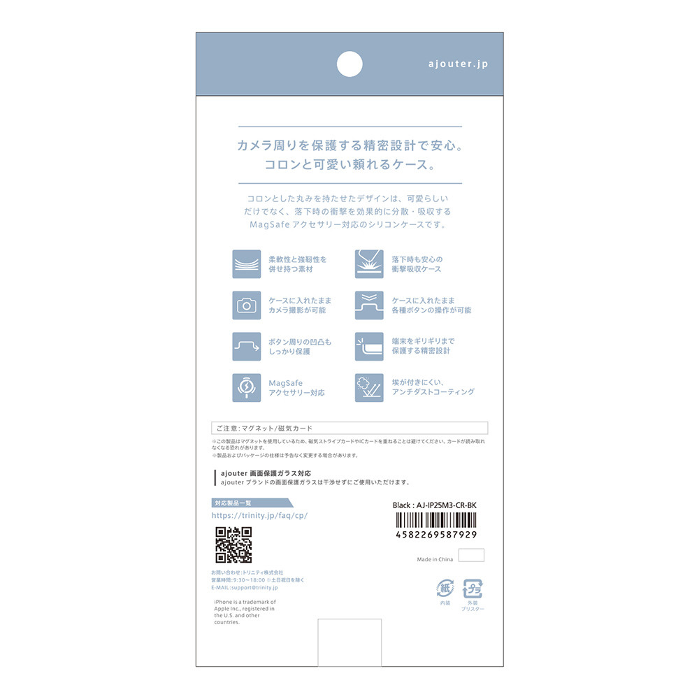iPhone 17 Pro ケース ajouter アジュテ [Coron] MagSafe対応 超精密設計 衝撃吸収シリコン ケース ブラック AJ-IP25M3-CR-BK