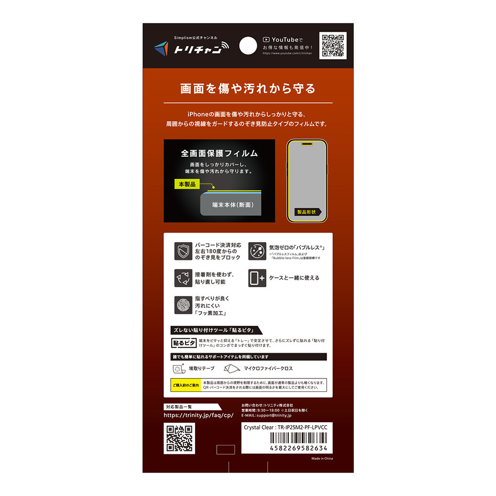 iPhone 17 / 16 Pro フィルム のぞき見防止 画面保護フィルム 光沢 TR-IP25M2-PF-LPVCC