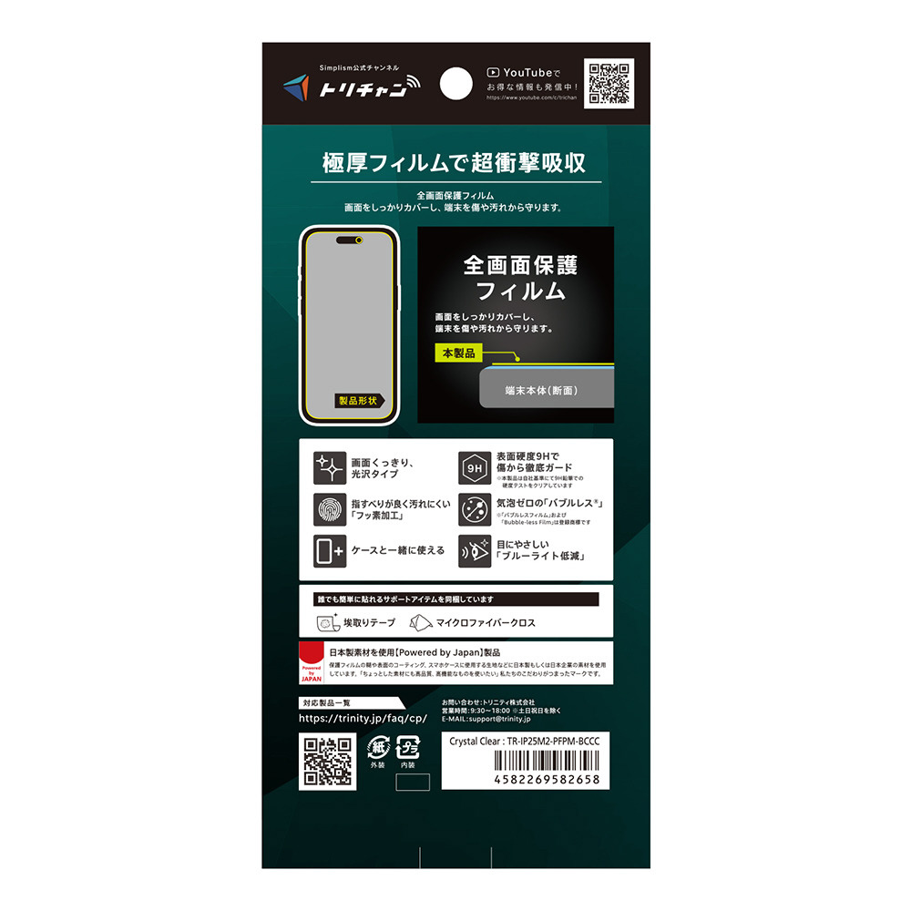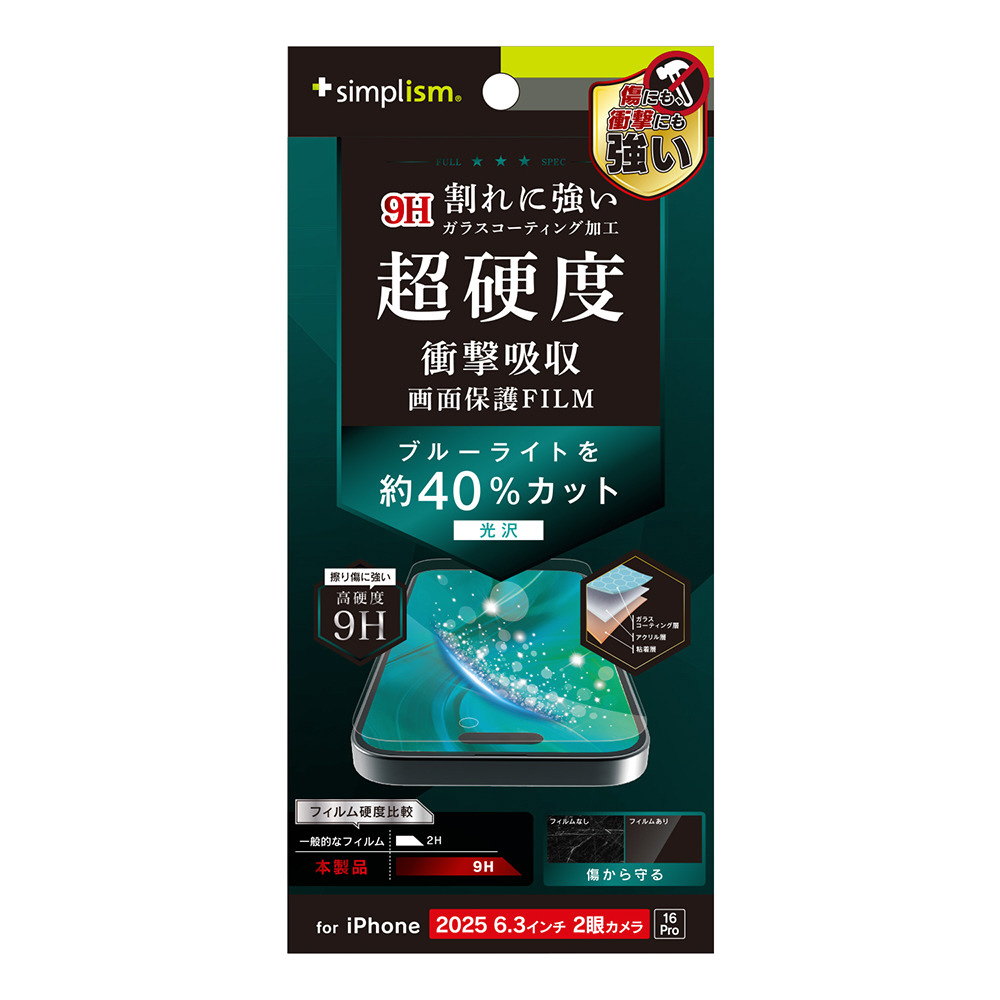 iPhone 17 / 16 Pro フィルム 9Hガラスライク ブルーライト低減 画面保護フィルム 光沢 TR-IP25M2-PFPM-BCCC