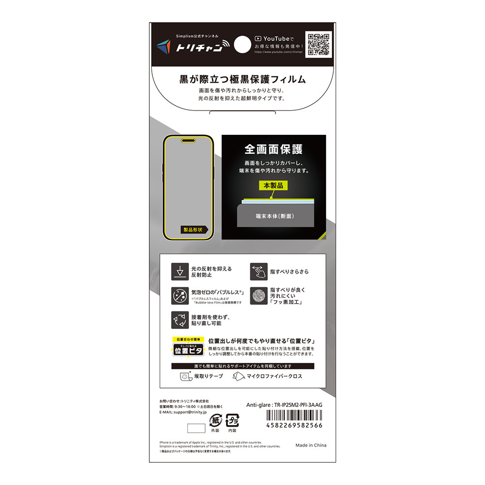 iPhone 17 / 16 Pro フィルム 極黒 超低反射 画面保護フィルム 位置ピタ 反射防止 TR-IP25M2-PFI-3AAG