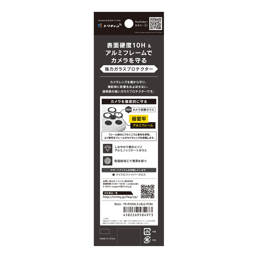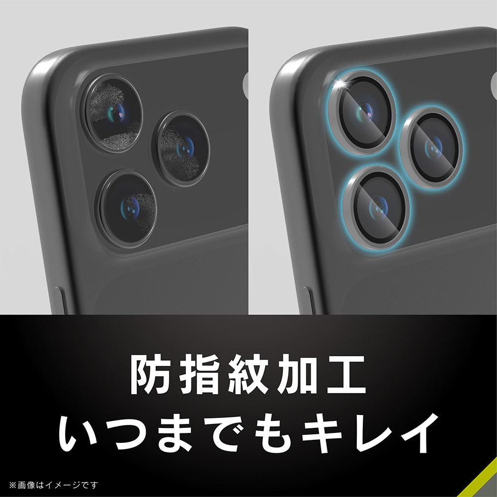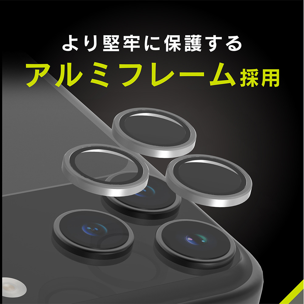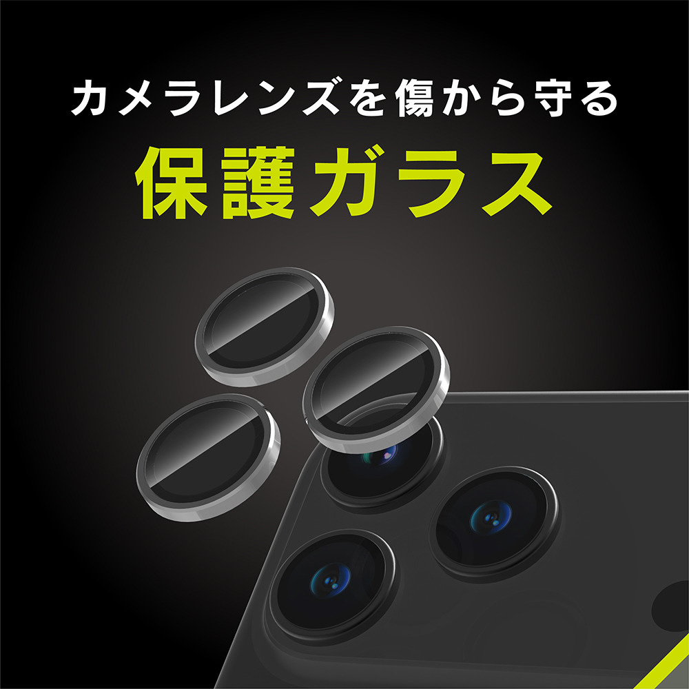 iPhone 17 Pro レンズフィルム / 17 Pro Max 精密設計ケース専用 アルミフレーム 高透明 レンズ保護ガラス ブラック TR-IP25ML3-LBLG-PCBK