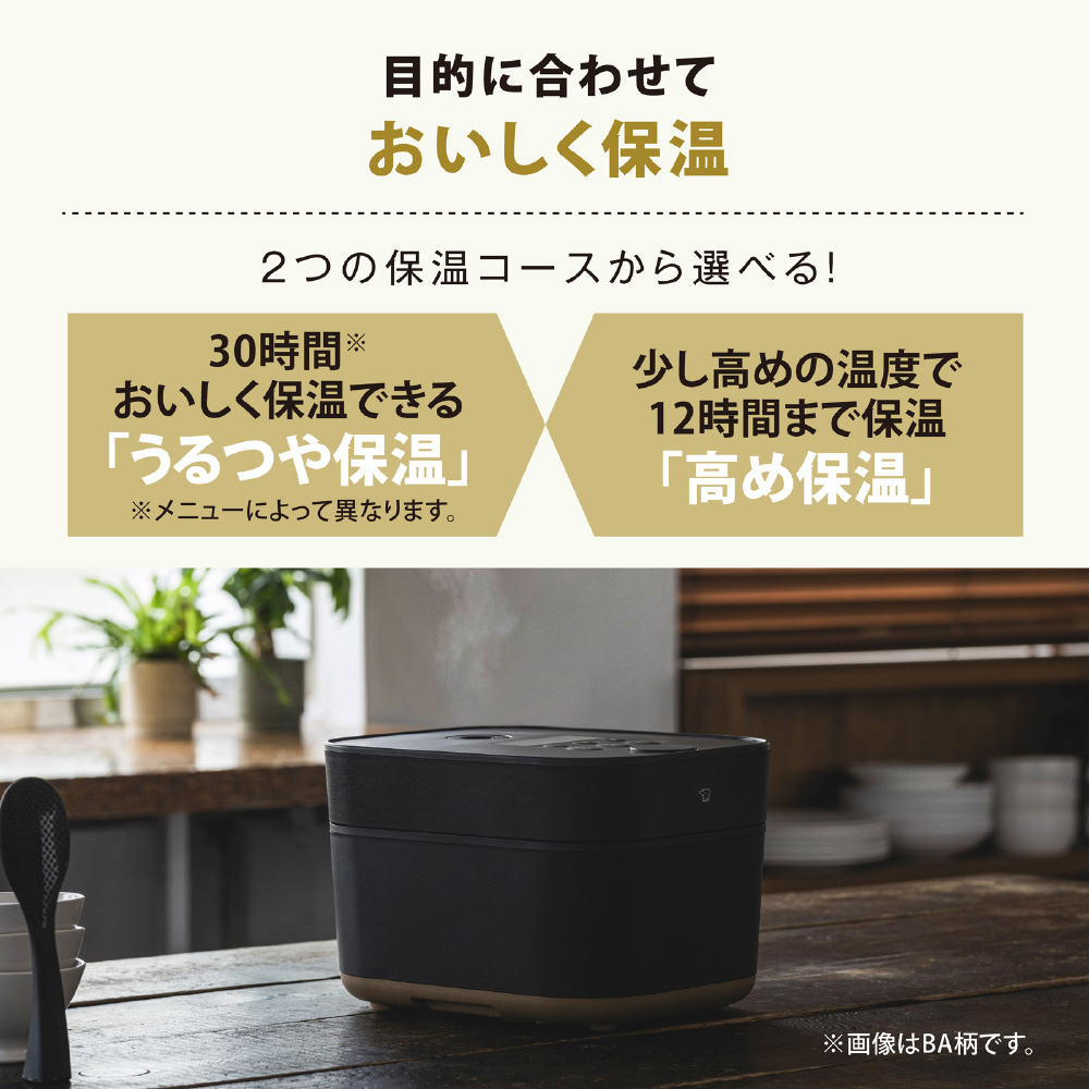 ・底センサーが保温に最適な火加減で温度コントロールします。水分の蒸発を抑え30時間までおいしく保温します。 ・長時間保温しない方におすすめの「高め保温」メニューがあります。