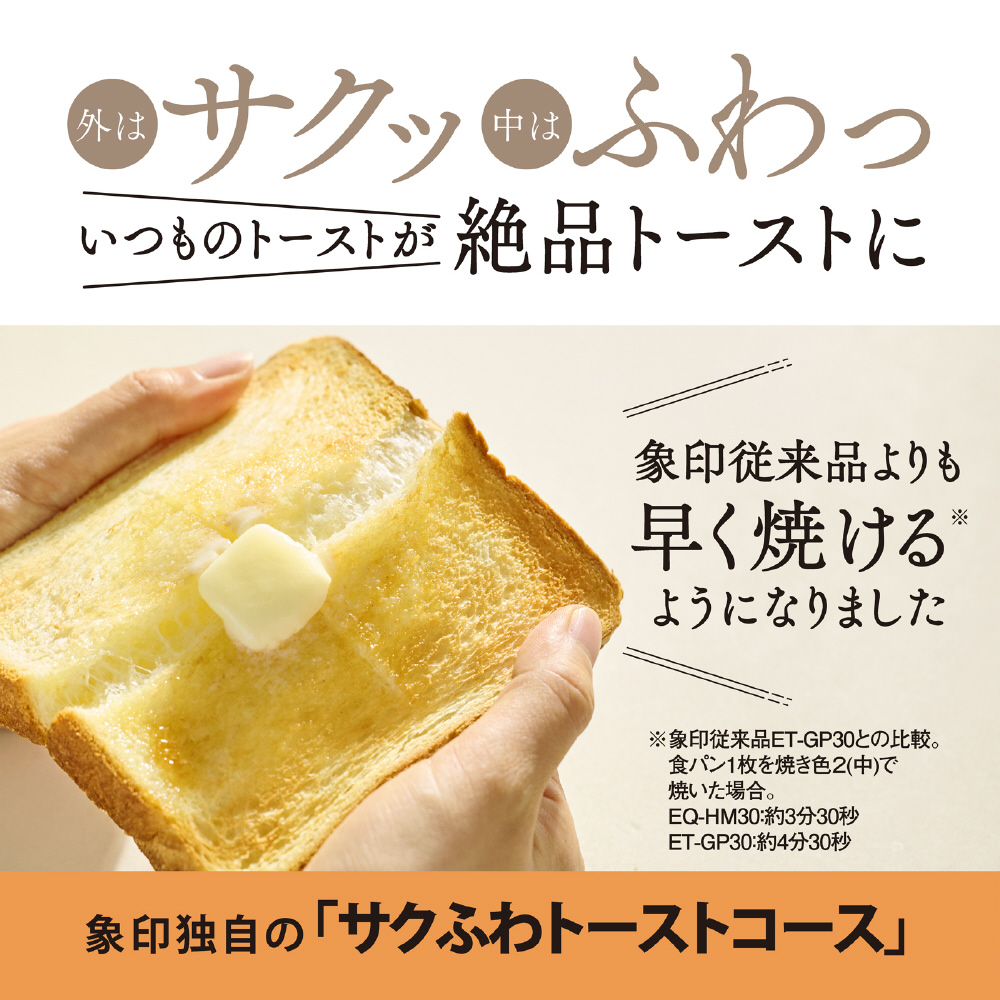 ・象印独自の緻密な温度コントロールで、手間なくおいしいトーストが焼けます。サクッとした食感とともに香ばしさが広がり、中はふんわりとあたたかく、口いっぱいにおいしさを感じる絶品トーストです。