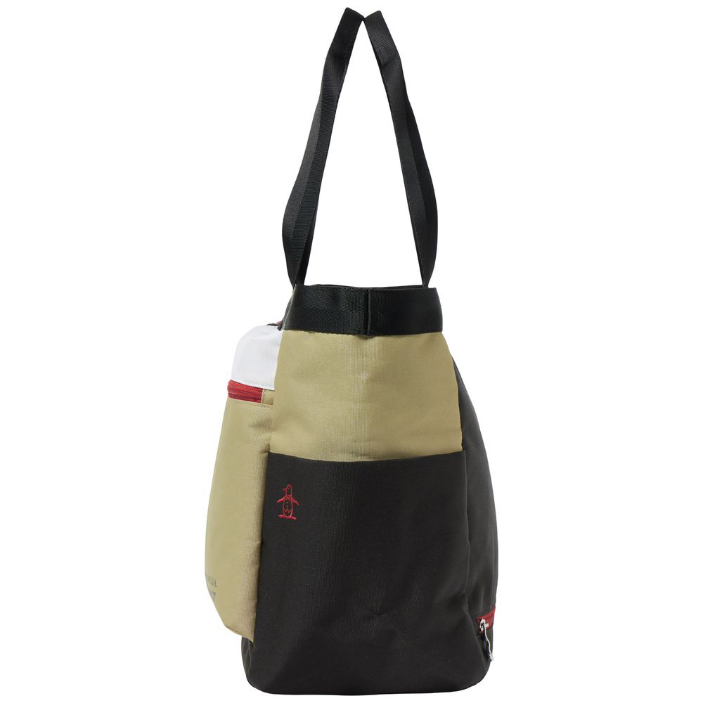 マルチカラーデザインが目を引く、機能的なトートバッグです。