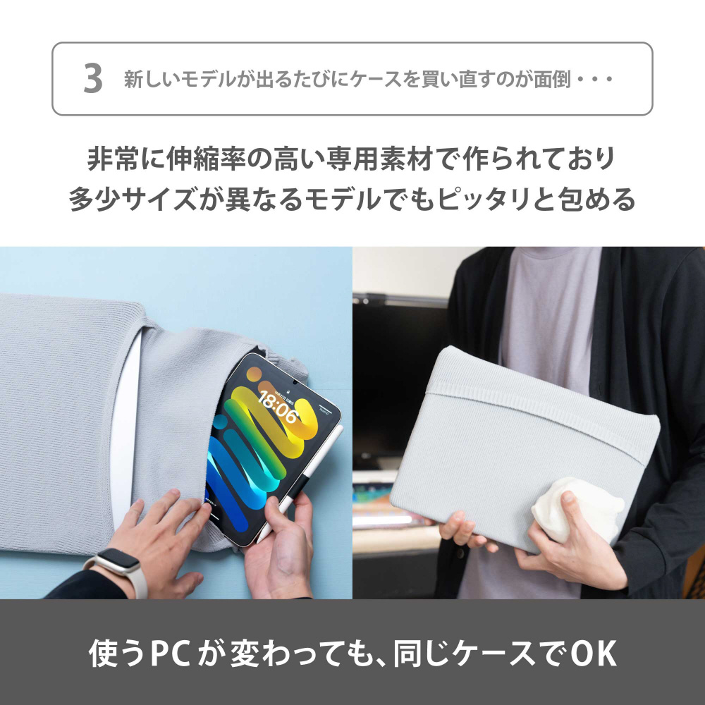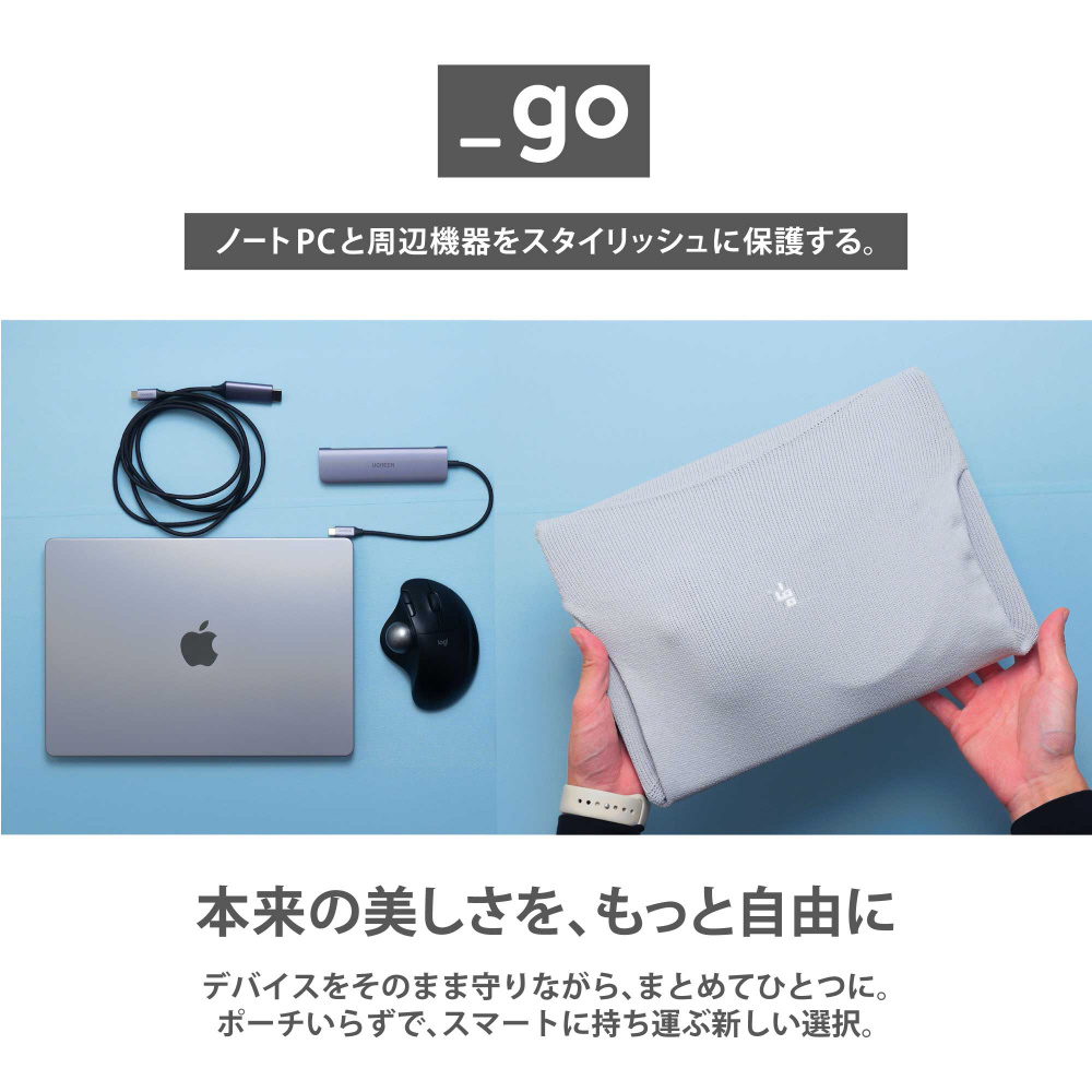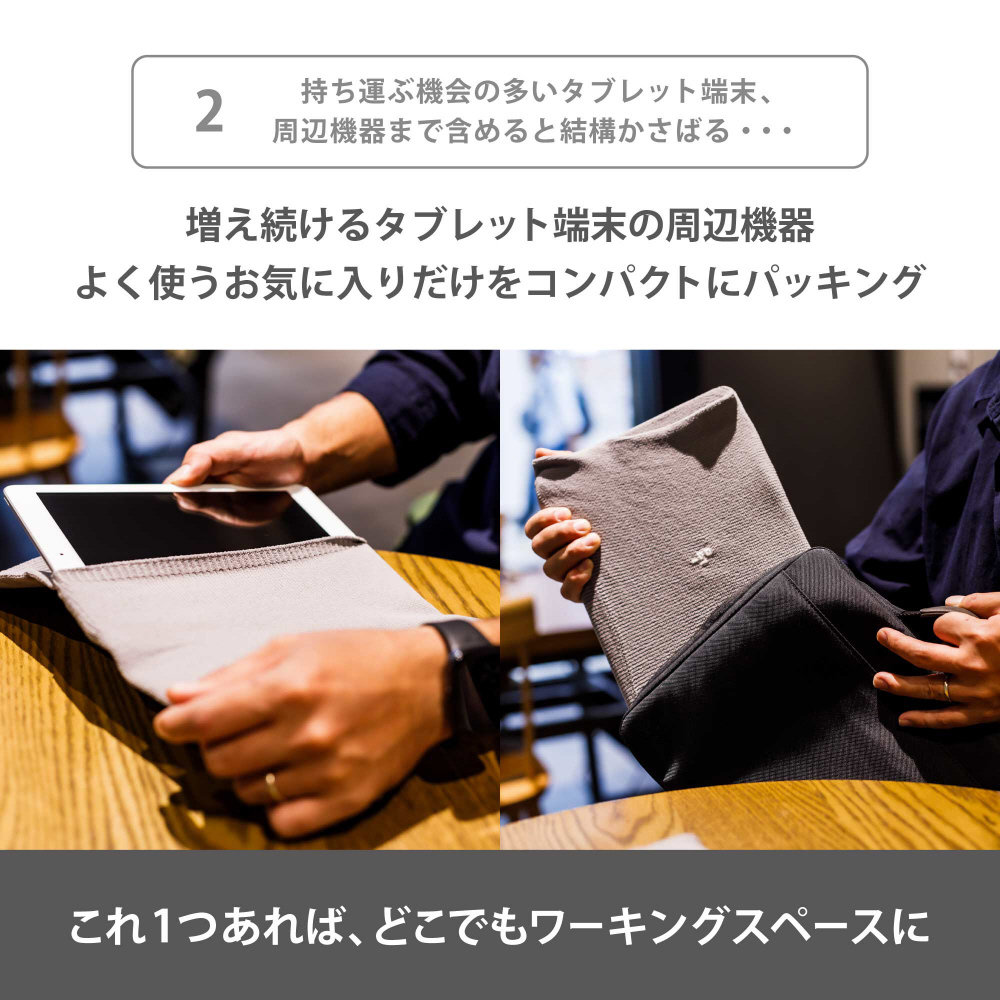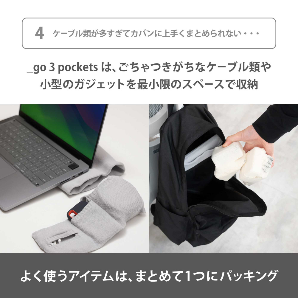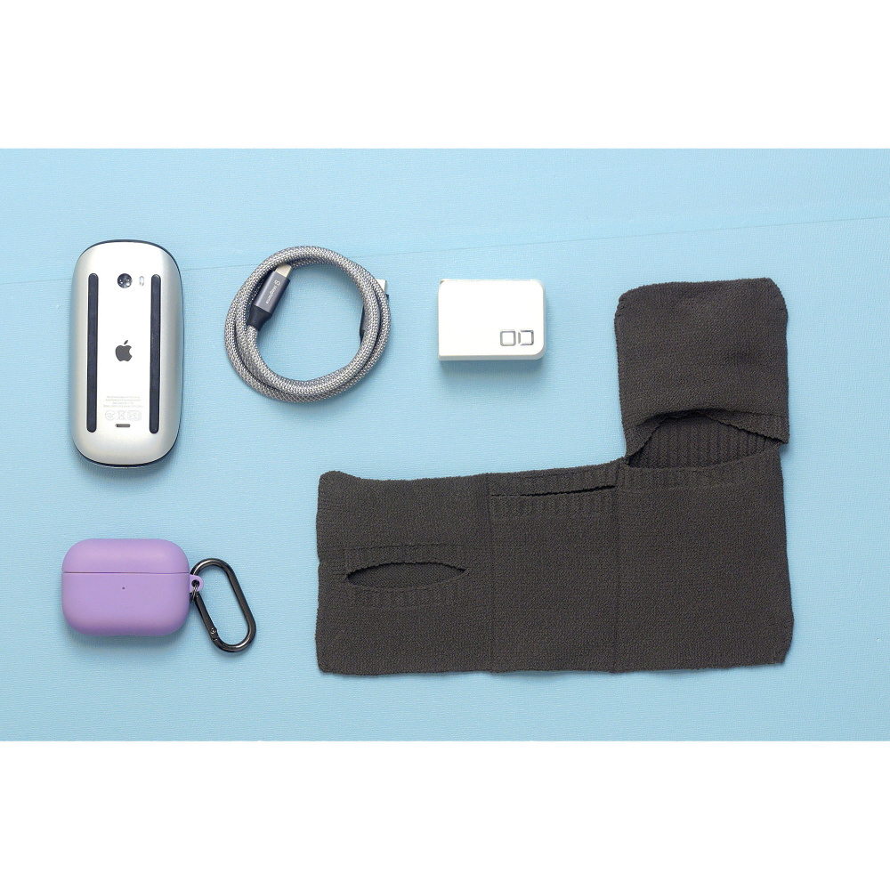 ケーブルや小型ガジェットをくるっと包んで、まとめて持ち運べる。