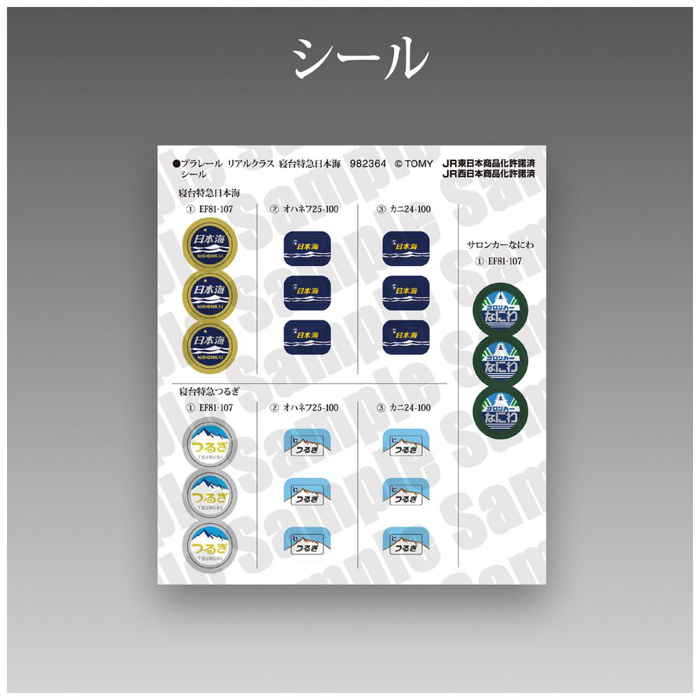 ■シールはEF81形「日本海」「つるぎ」「サロンカーなにわ」のヘッドマークシール、オハネフ25-100・カニ24-100は「日本海」「つるぎ」のトレインマークシール付属。