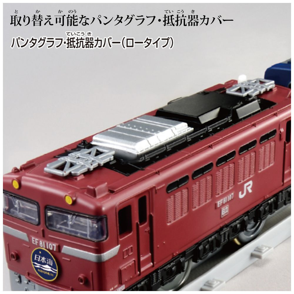 ■EF81形のナンバープレートは「EF81-107」、メーカーズプレート、パンタグラフ、抵抗器カバーなどリアルな造形・塗装などで表現。