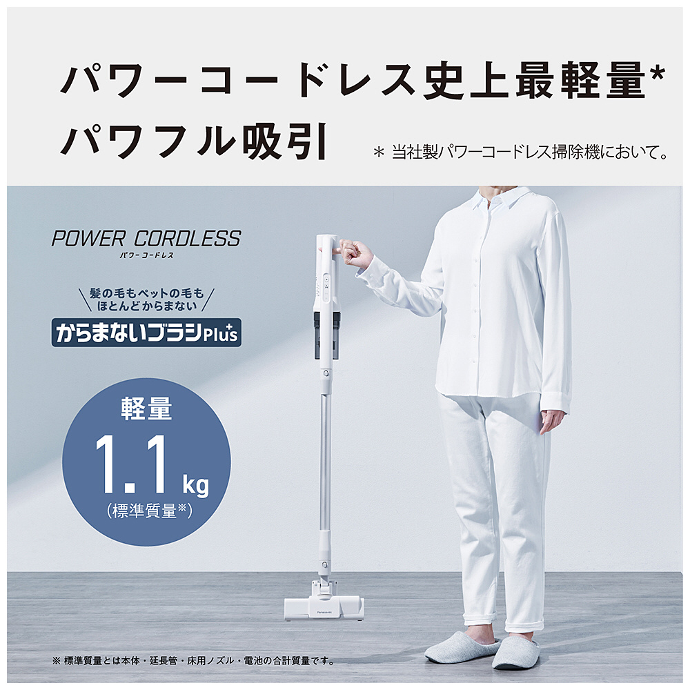 ■パワーコードレス史上No.1(★2)の軽さ。本体質量1.1kg(スティック時)★2当社製パワーコードレス掃除機において。2025年7月31日現在。