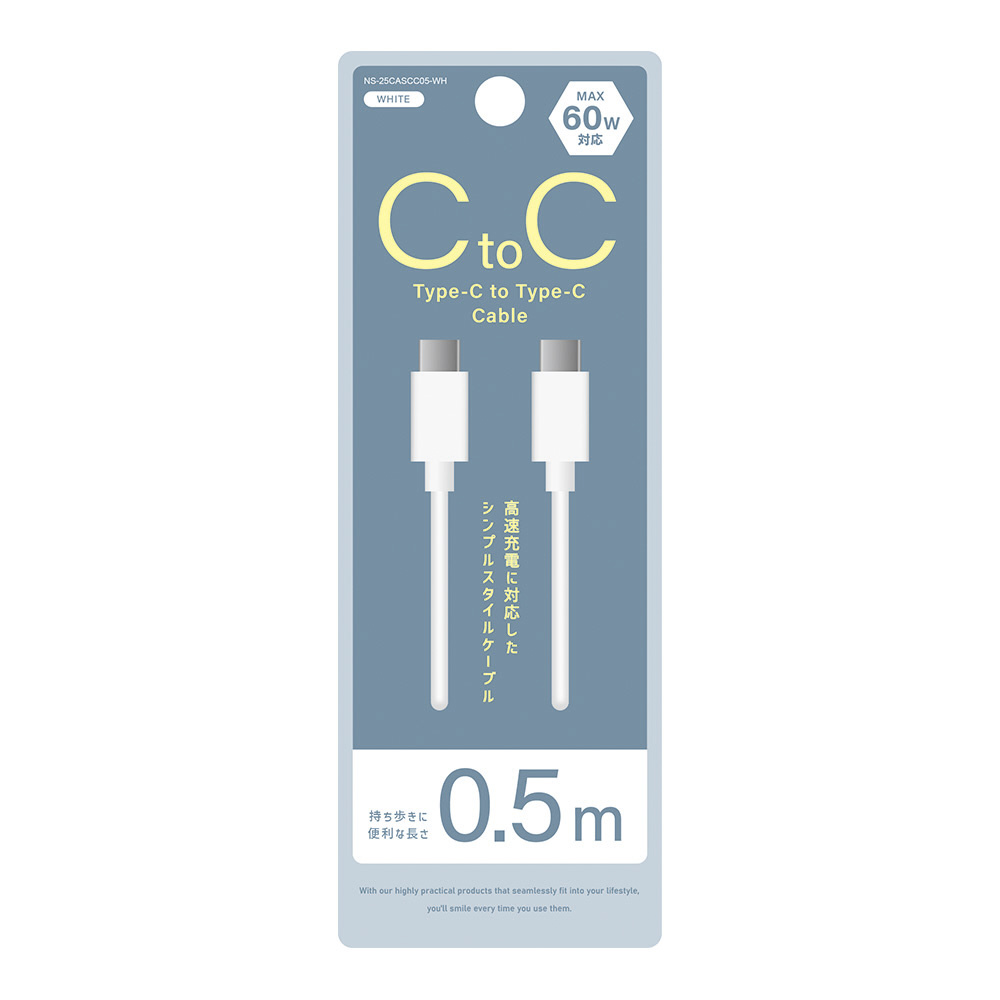 USB-C ⇔ USB-Cケーブル [充電 /転送 /0.5m /PD60W /USB2.0] ホワイト NS-25CASCC05-WH [USB-C ⇔ USB-C]