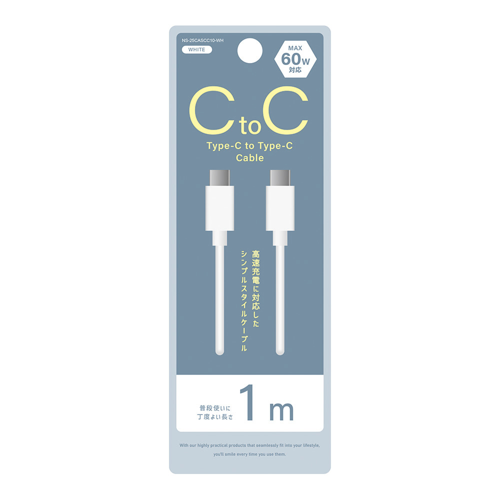 USB-C ⇔ USB-Cケーブル [充電 /転送 /1.0m /PD60W /USB2.0] ホワイト NS-25CASCC10-WH [USB-C ⇔ USB-C]