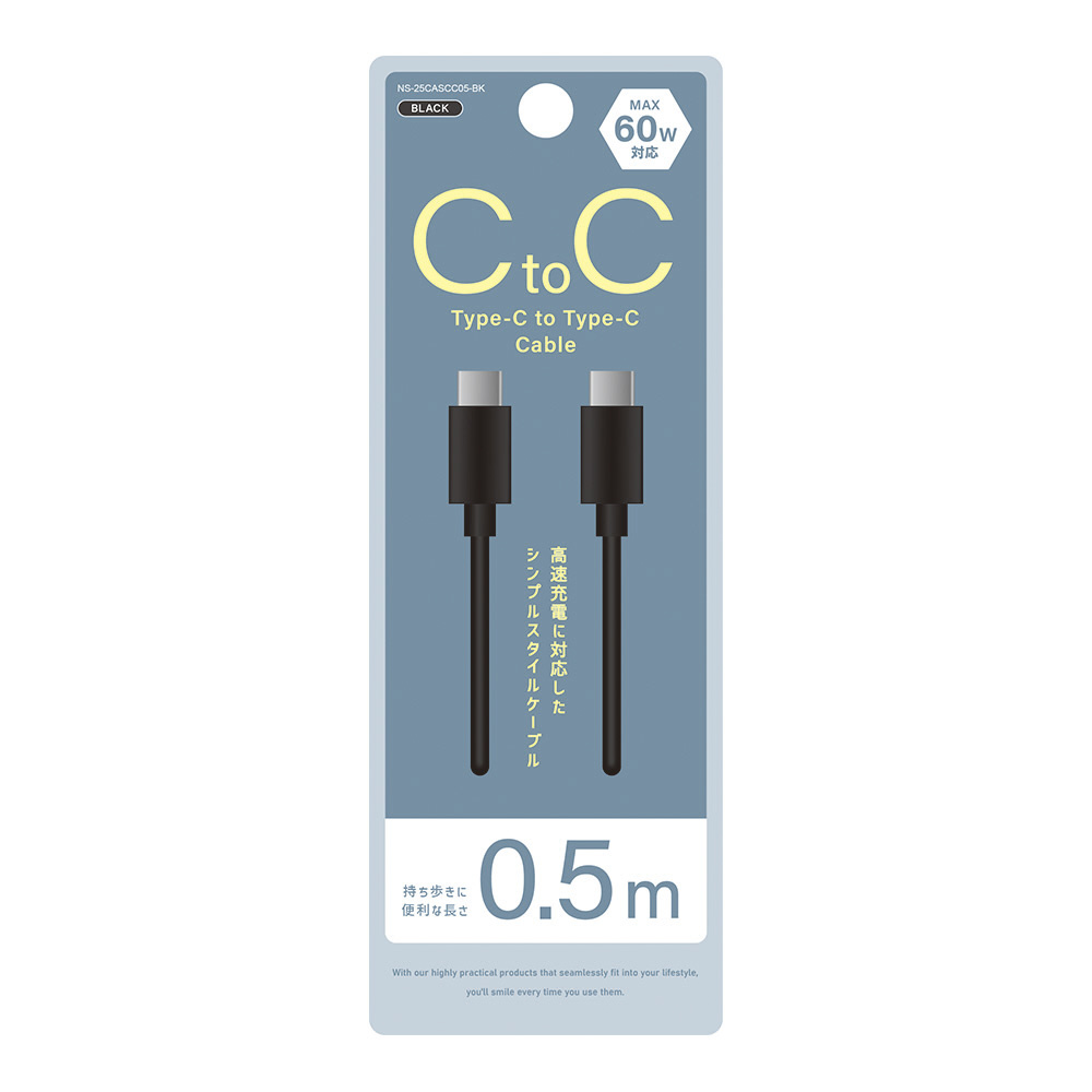 USB-C ⇔ USB-Cケーブル [充電 /転送 /0.5m /PD60W /USB2.0] ブラック NS-25CASCC05-BK [USB-C ⇔ USB-C]