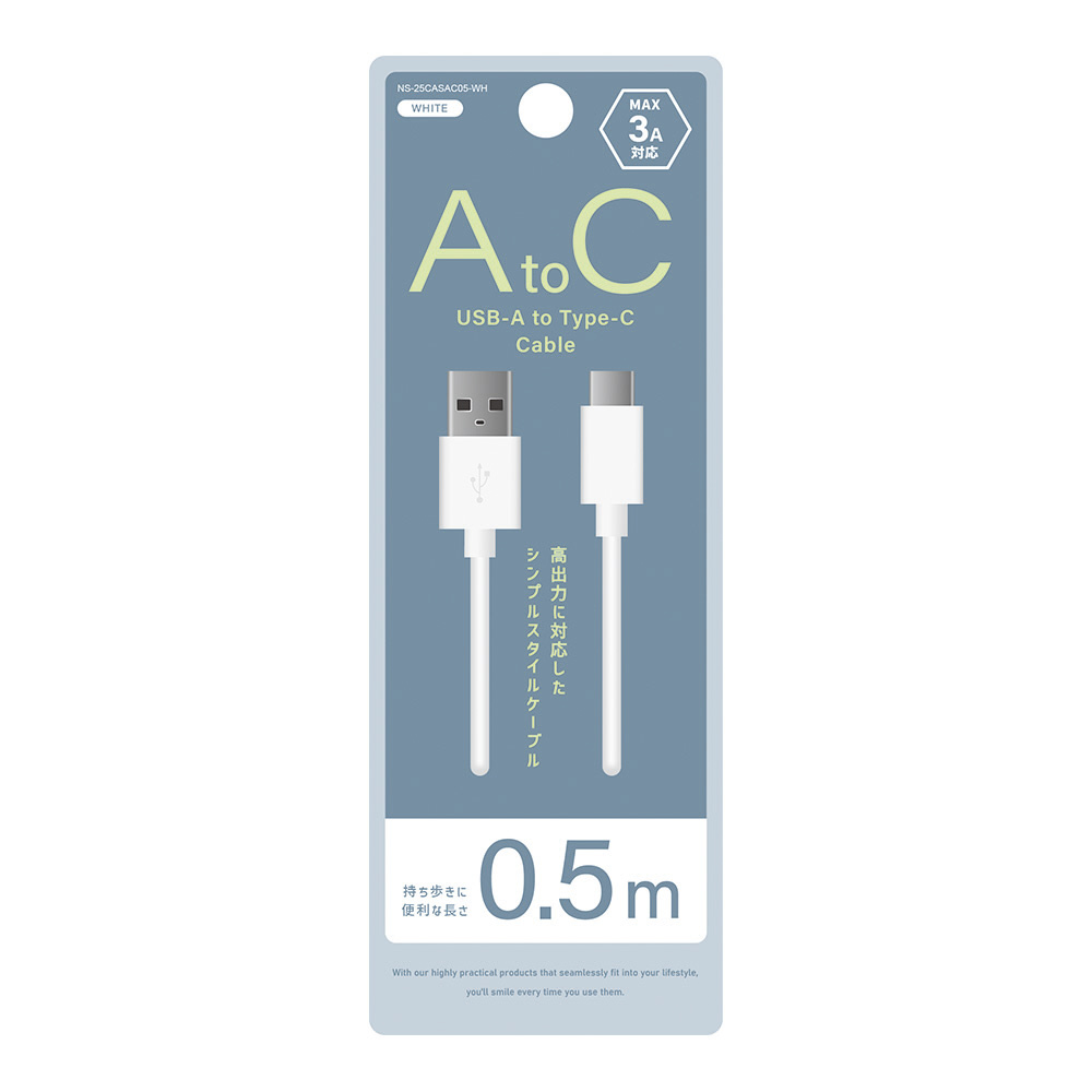 USB-A to Type-Cケーブル 0.5m ホワイト NS-25CASAC05-WH