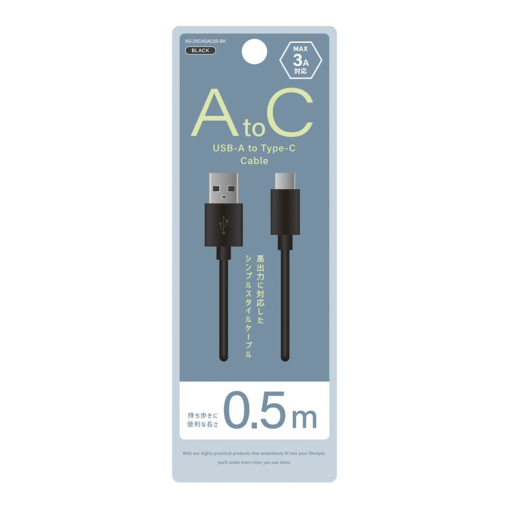USB-A to Type-Cケーブル 0.5m ブラック NS-25CASAC05-BK