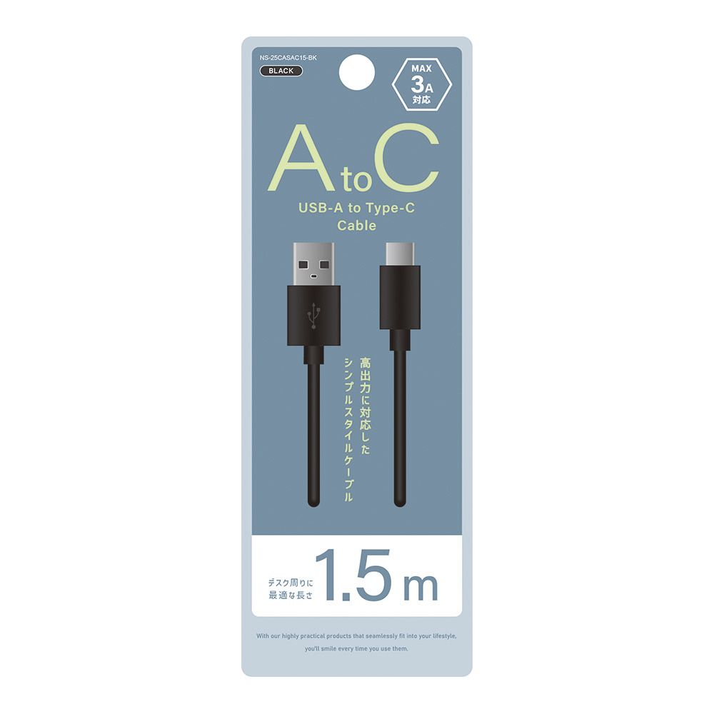 USB-A to Type-Cケーブル 1.5m ブラック NS-25CASAC15-BK