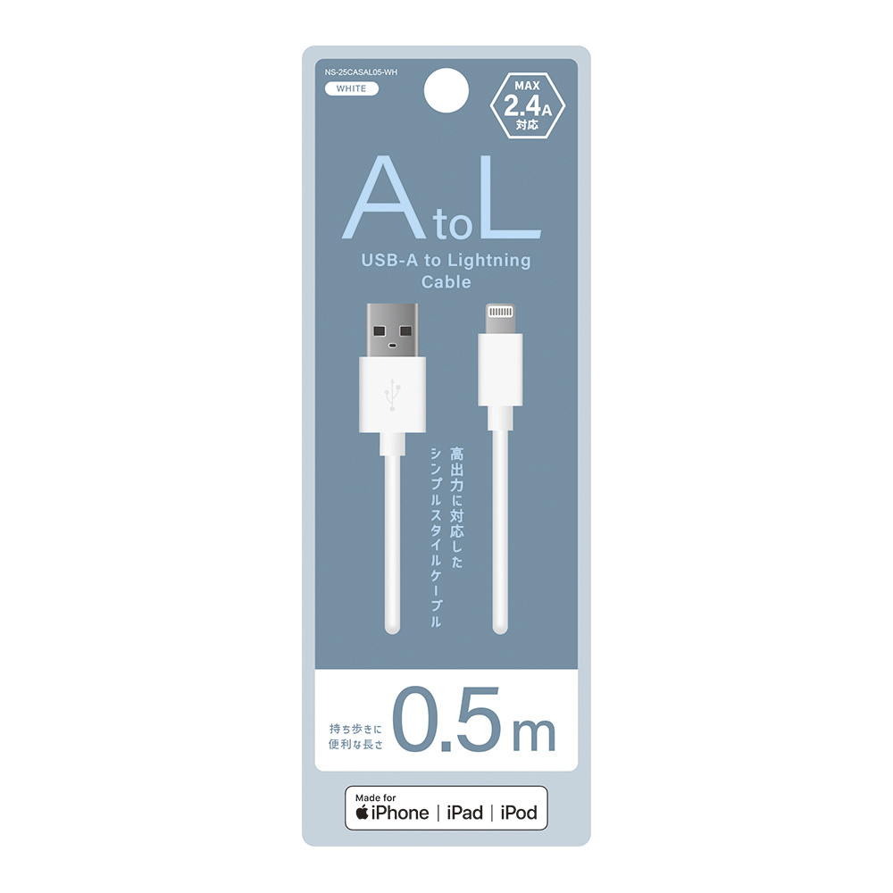 USB-A to Lightningケーブル 0.5m ホワイト NS-25CASAL05-WH