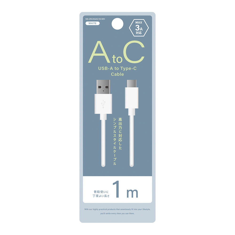 USB-A to Type-Cケーブル 1m ホワイト NS-25CASAC10-WH