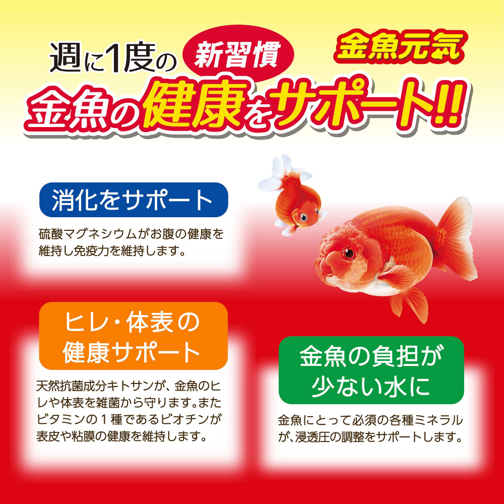 ・天然好酸性分キトサン、ビオチン配合で、金魚のヒレや体表を雑菌から守ります。