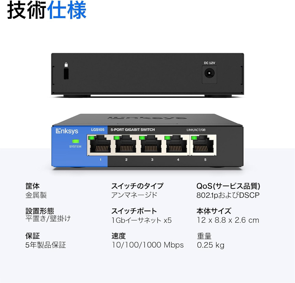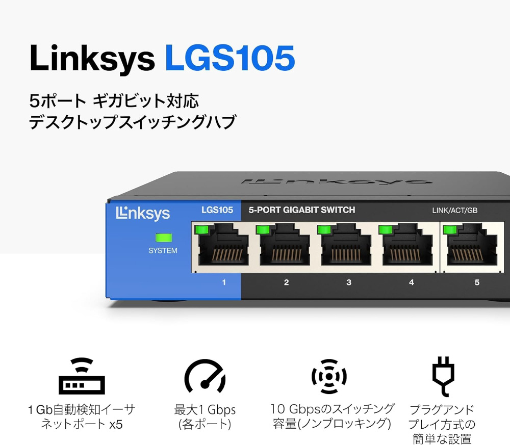 スイッチングハブ [5ポート /1Giga対応 /ACアダプタ] LGS105-JP