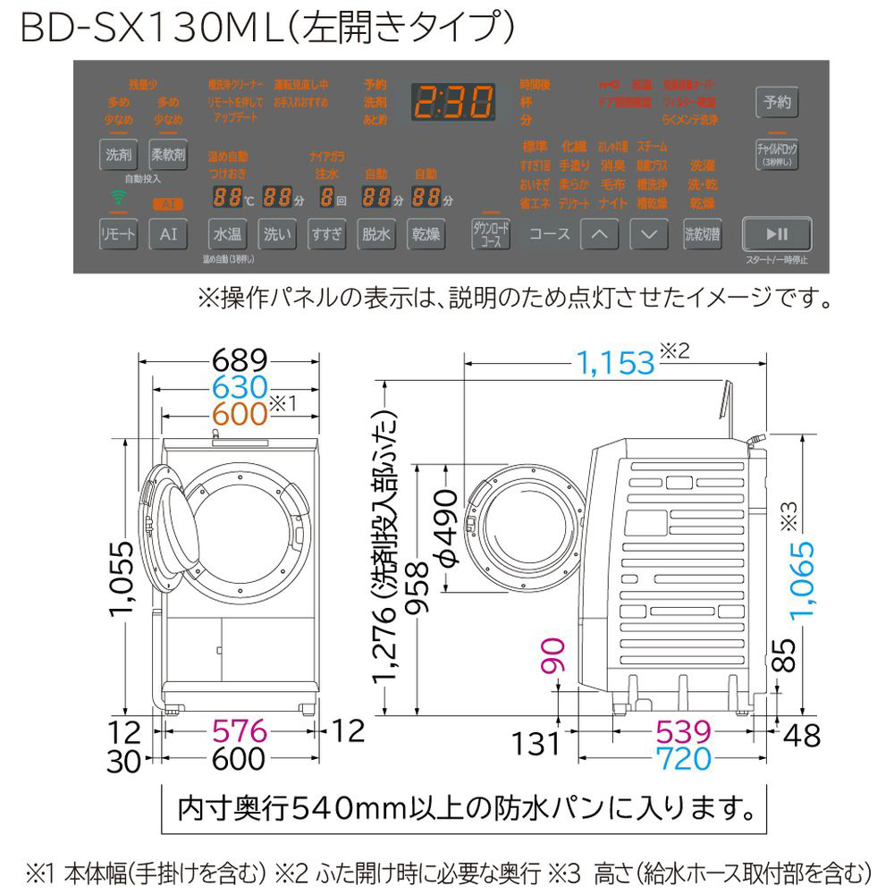 ドラム式洗濯機 ビッグドラム ダークグレー BD-SX130ML-H [洗濯13.0kg /乾燥7.0kg /ヒートポンプ乾燥 /左開き]