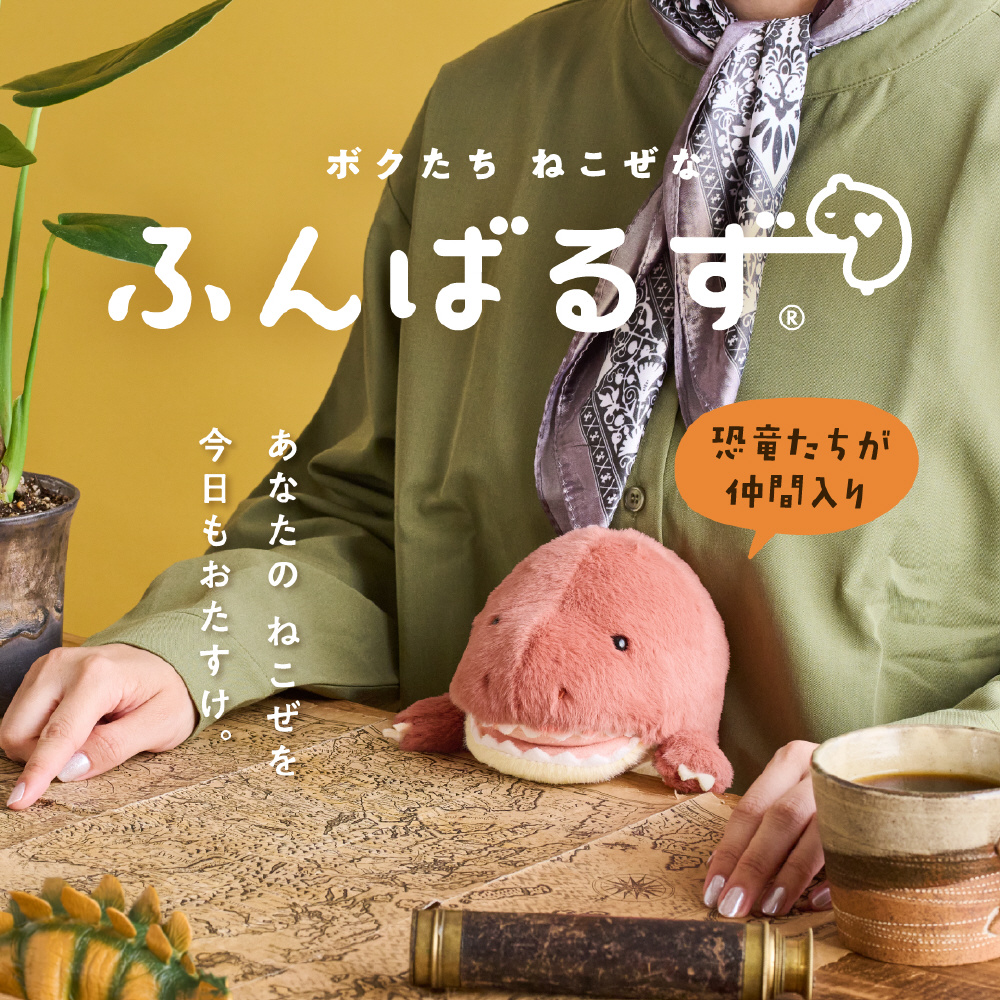 机とおなかの間に挟むことで、ねこぜなあなたを助けてくれるぬいぐるみです。ねこぜなあなたをサポートしてくれますが、ふんばるず自身もちょっぴりねこぜ。