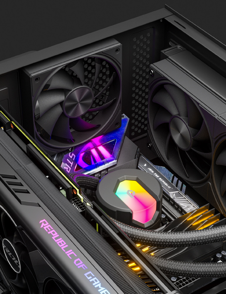 upHere U3は、PWM制御に対応した120 mm角のケースファンです。最大64.6 CFMの大風量とPWM制御による回転数の調整により、システムの稼働状況に合わせて静音性と冷却力を両立することができます。