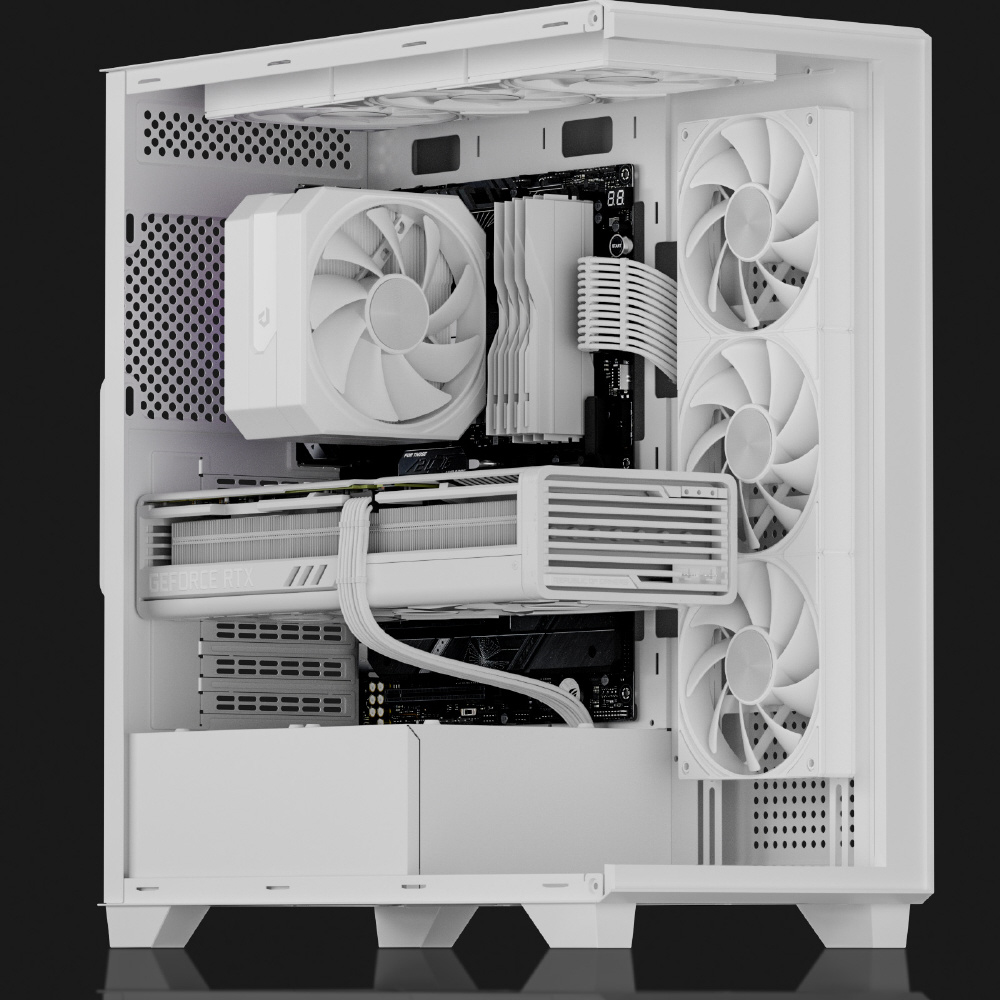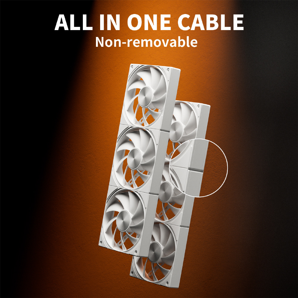 upHere U3 All-in-Oneは、PWM制御に対応した120 mm角の3連ケースファンです。最大64.6 CFMの大風量とPWM制御による回転数の調整により、システムの稼働状況に合わせて静音性と冷却力を両立することができます。