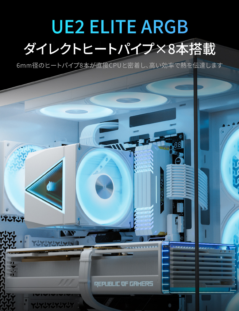 CPUクーラー 120mmファンx2 [LGA1851/1700/115x/1200/2011/2066/1366・AM5/AM4/AM3/AM2/AM3+/AM2+/FM2/FM1] UE2 Elite ARGB ホワイト UE2 Elite TC8