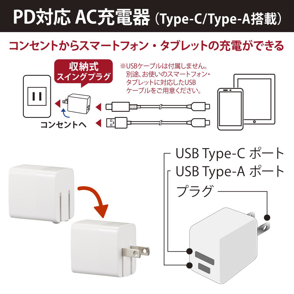 ※ USBケーブルは付属しません。別途、お使いのスマートフォン、タブレットに対応したUSBケーブルをご用意ください。