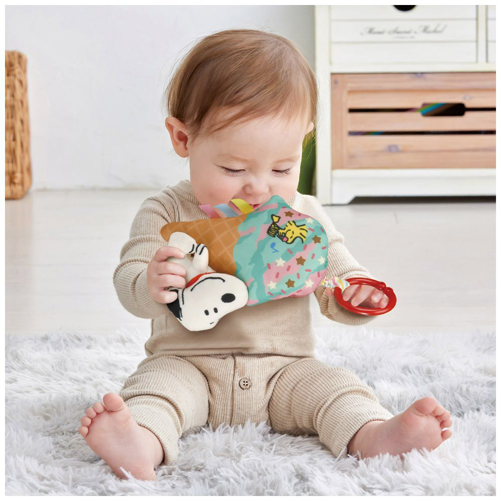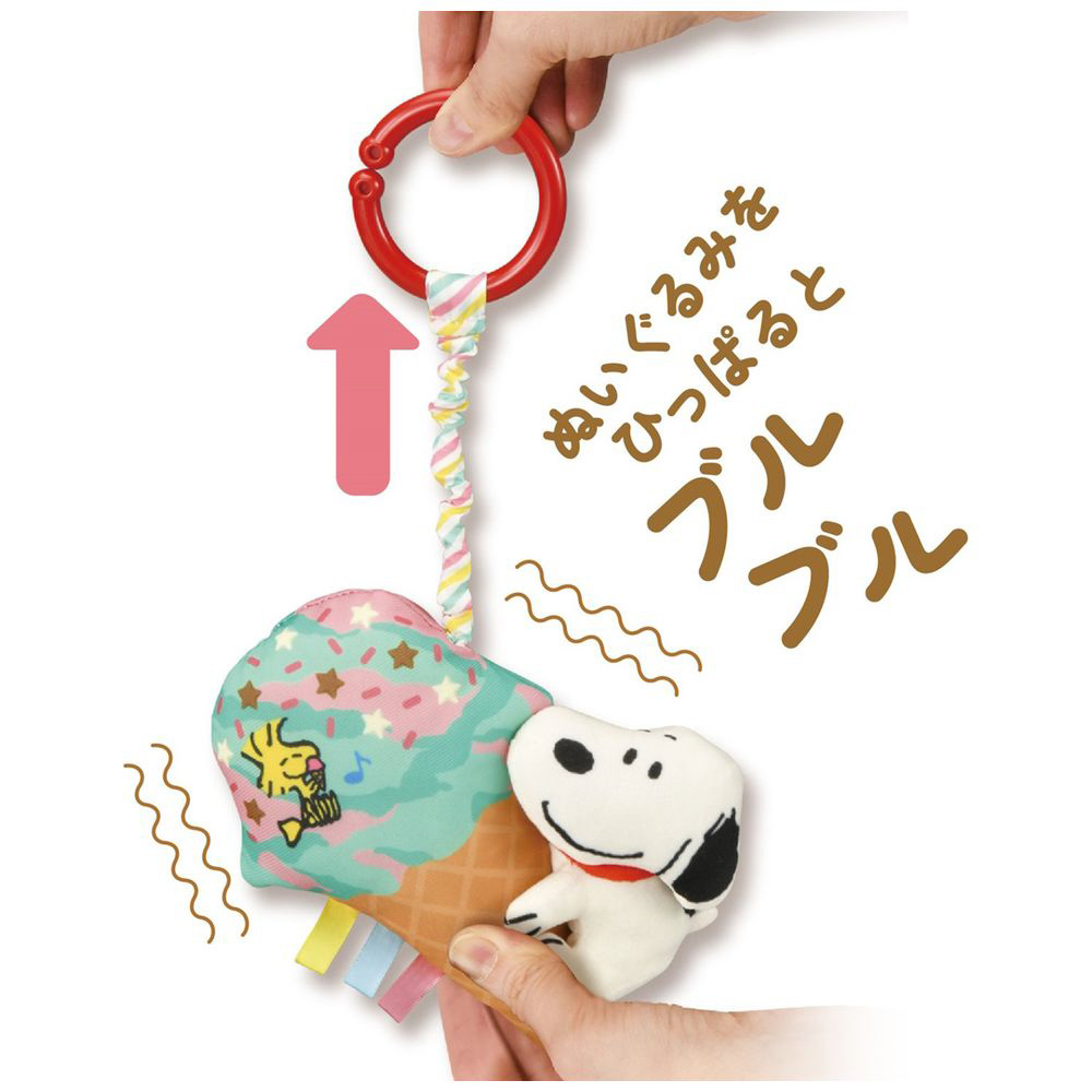 ぬいぐるみをひっぱるとブルブルしながら戻る!赤ちゃんが大好きなパリパリ入り。