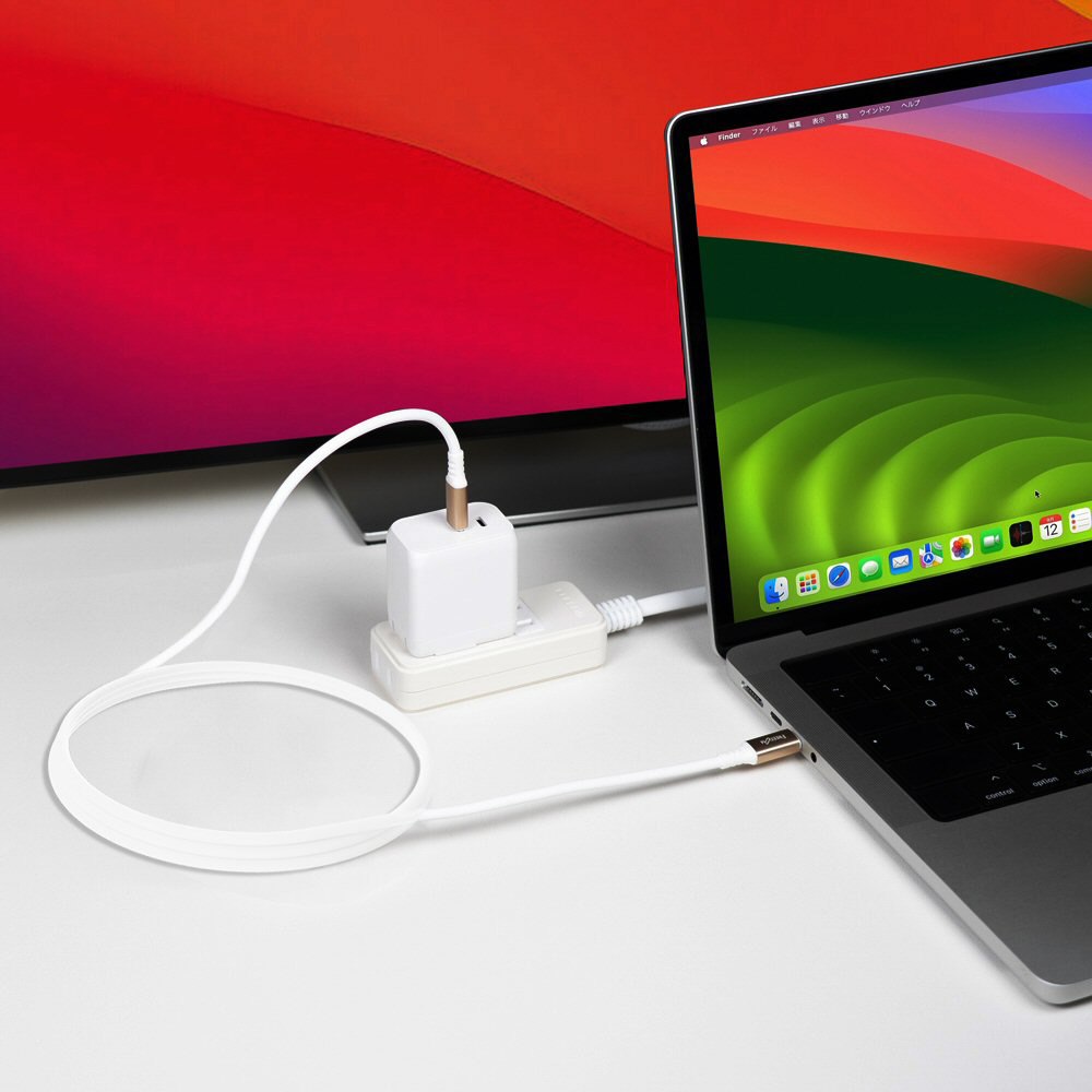 USB PD240W(USB Power Delivery EPR)に対応しており、ハイエンドPCや大電力が必要な機器への高出力充電器を使用して最速で充電が可能なケーブルです。